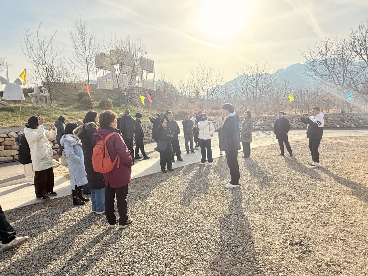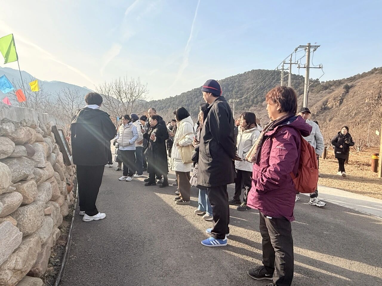 采风途中,在中国作家协会会员、平谷文史专家柴福善的细致讲解下,团友们一路驻足李锴像、南山村倒影潭,自然肌理与人文遗存相映成趣,作家们驻足观景,沉浸式感受生态宜居的鲜活底色。