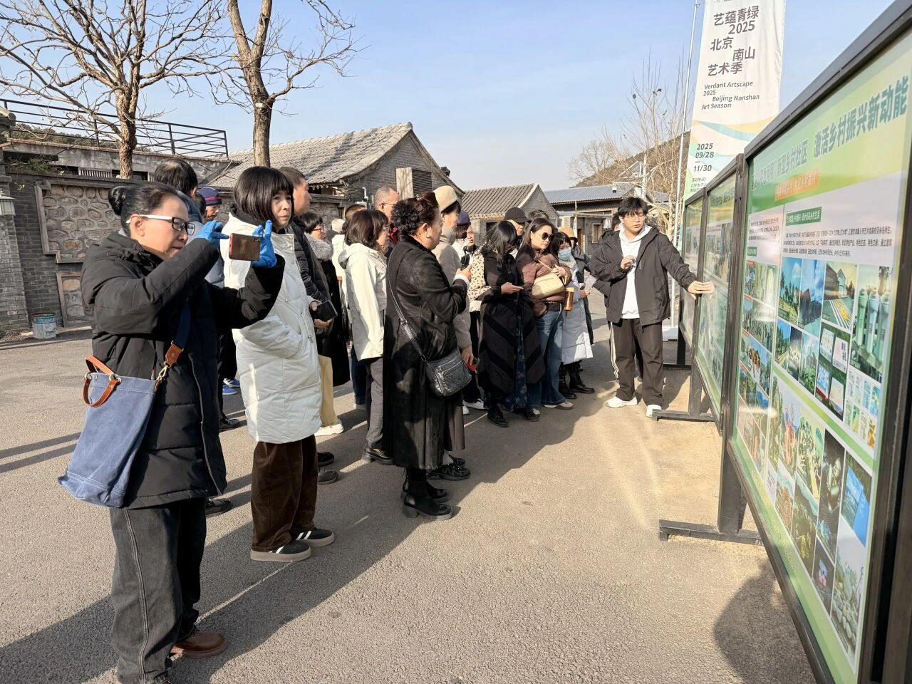 采风团首先走进南山村——全国首个“平急两用”新型乡村社区,探寻南独乐河镇乡村建设的创新实践。一行人详细了解南山村“平急两用”新型乡村社区规划理念,深入理解“平时可休闲、急时能应急”的核心内涵,闲置农宅改造民宿既满足旅居需求,又具备应急保障功能,沿途观赏南山艺术季系列艺术作品,艺术赋能让街巷焕新提质,直观感受乡村振兴带来的民生温度和发展活力。