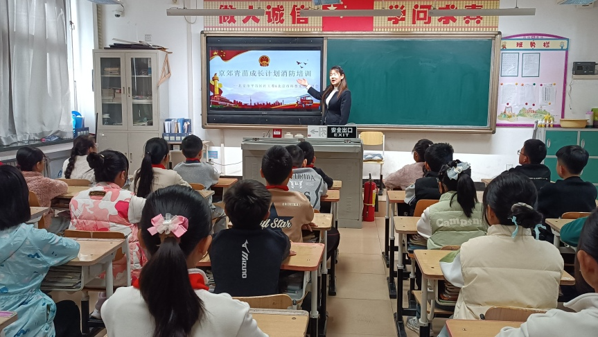 随后,吕老师主持了京郊青苗成长计划消防培训,通过实物展示让学生认识身边的消防器材及其作用,并示范了灭火器等设备的操作方法。吕老师还以真实案例强调消防安全的重要性,教育学生在陌生环境下要熟悉消防器材和逃生路线,牢记“低姿弯腰捂口鼻靠墙走”的火灾逃生要领,增强了学生们的自我保护意识。