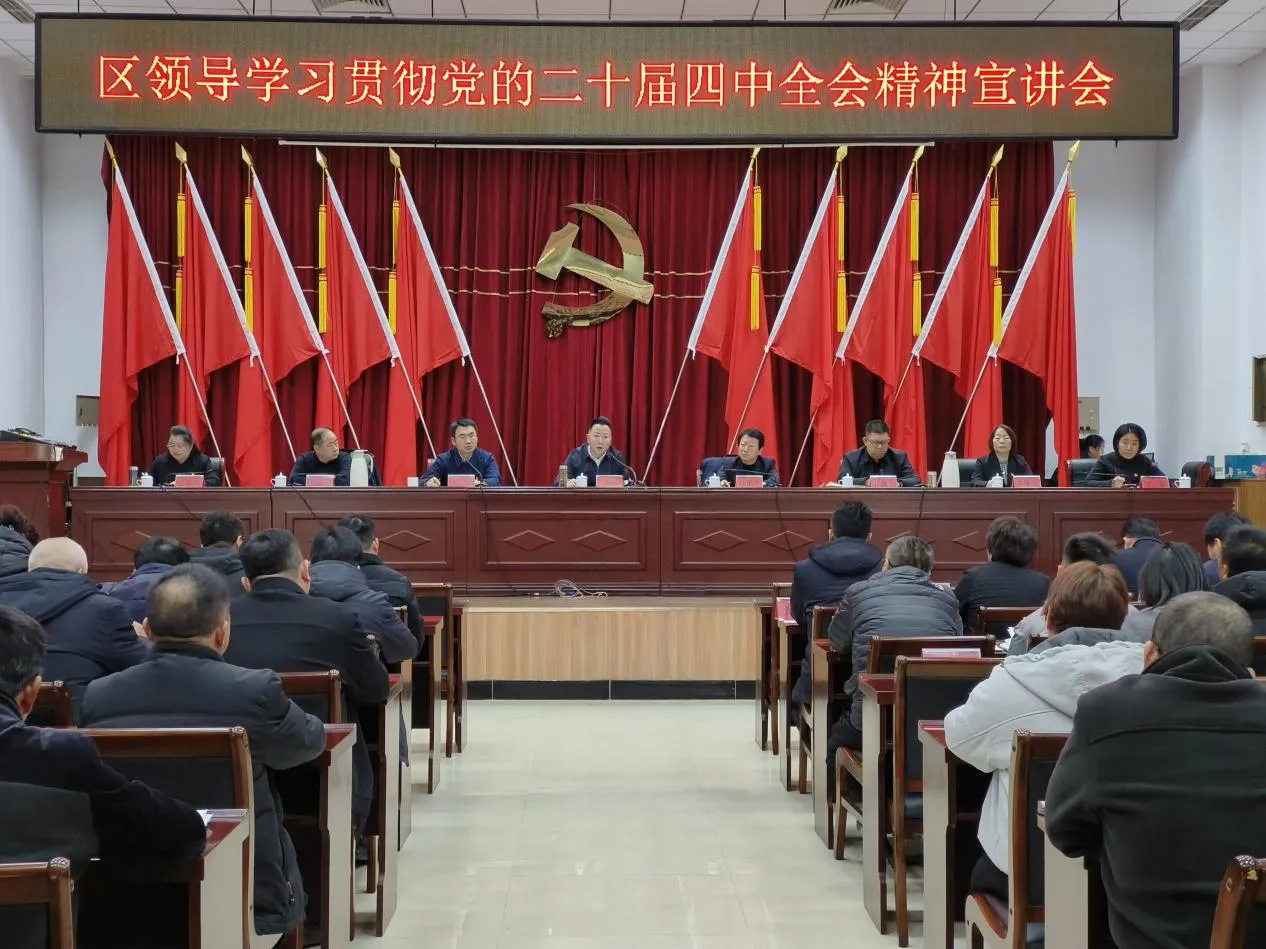 11月27日下午,学习贯彻党的二十届四中全会精神宣讲会在刘家店镇举行,区委常委、政法委书记李子腾作宣讲报告。刘家店镇班子成员,科室负责人,村党支部书记、主任,第一书记参加会议。