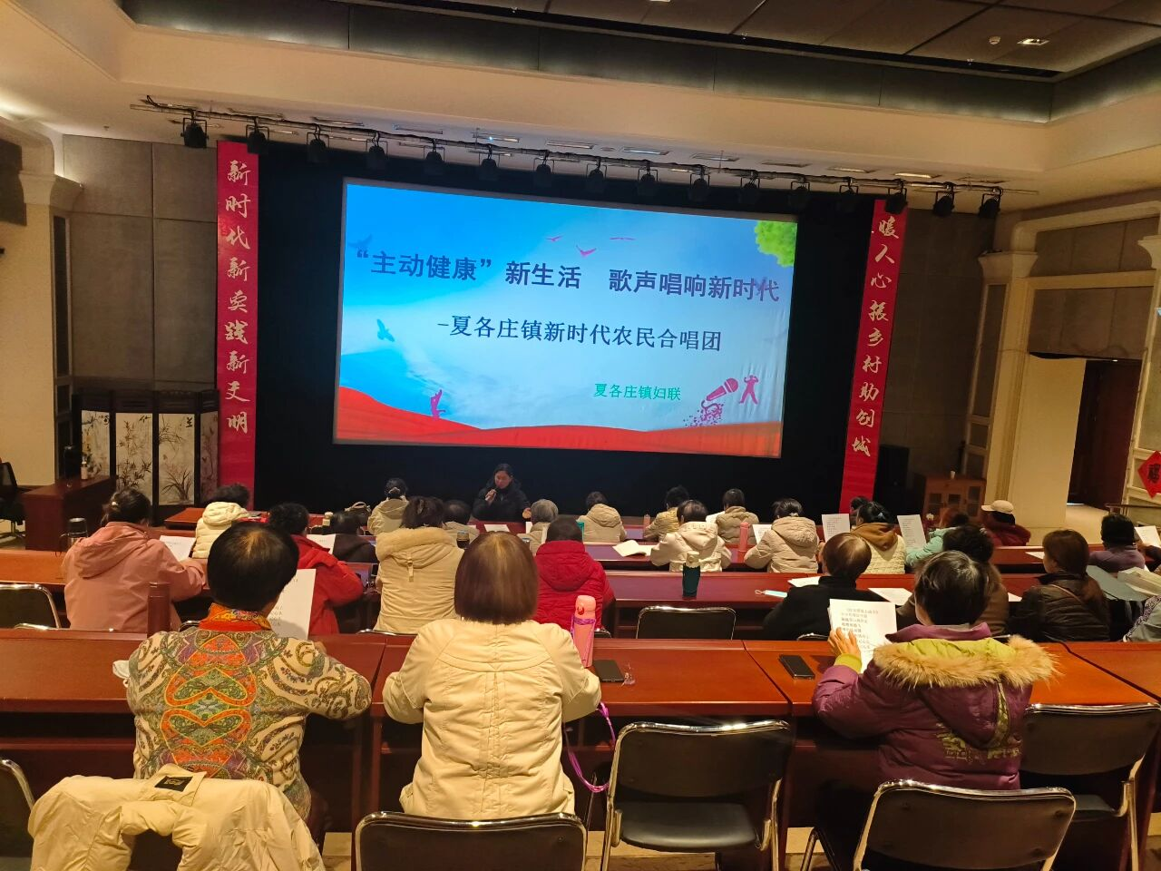 为丰富全镇妇女精神文化生活,搭建交流展示平台,凝聚巾帼奋进力量。夏各庄镇组建新时代妇女合唱团,选取了《珊瑚颂》、《年轻的朋友来相会》、《洗衣歌》等贴合乡村生活、经典红色歌曲。考虑到学员们大多没有专业的音乐基础,培训老师从最基础的发声技巧、节奏把握入手,耐心讲解唱歌的基本要领。