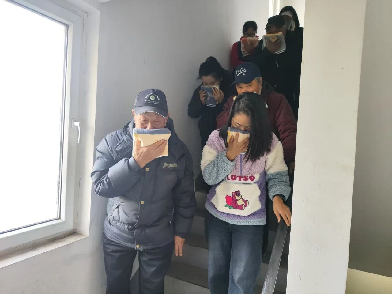 演练开始后,社区工作人员、物业安保人员、后勤人员迅速启动应急预案,分工协作开展疏散引导、紧急救护、秩序维护等工作。在安全负责人的专业指导下,居民们捂住口鼻,弯腰低姿,沿着预定疏散路线快速、有序地撤离至小区安全集结点。随后,现场组织居民观看消火栓、灭火器实操演练,在安全负责人的指导下,大家踊跃参与,亲身体验火灾扑救过程,切实掌握了灭火器的使用技能。