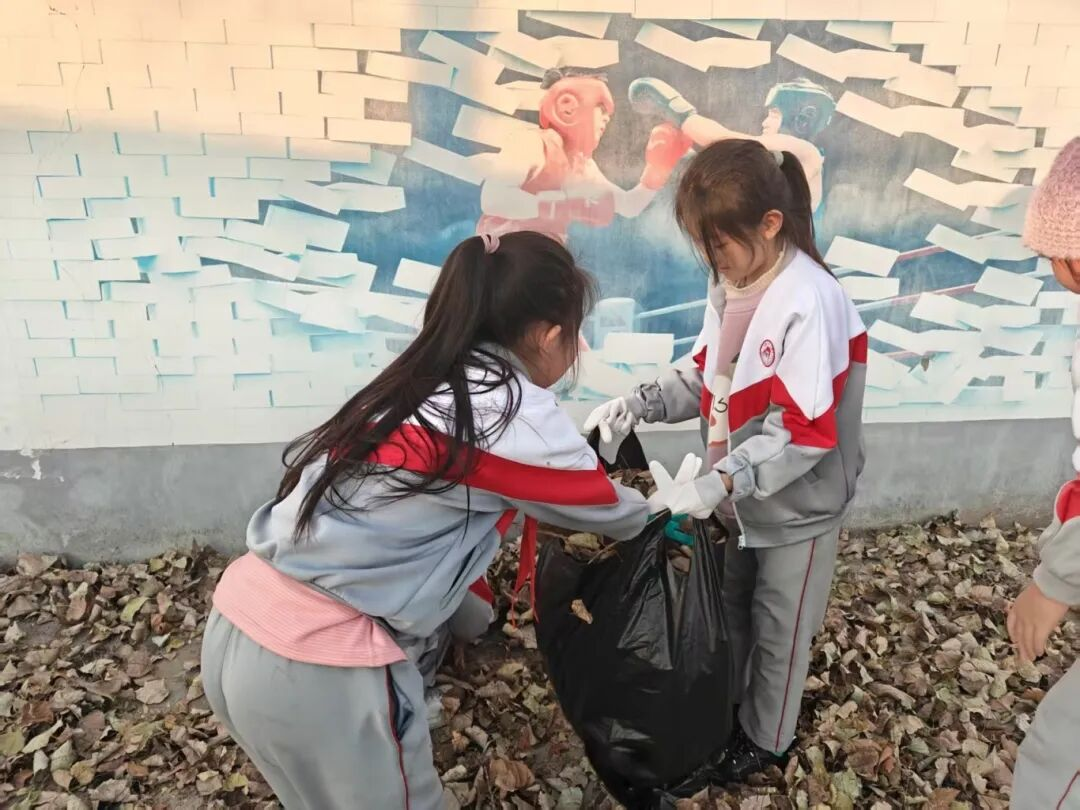 经过一个多小时的奋战,原本落叶满地的校园变得焕然一新,整洁而明亮。看着一袋袋“战利品”和干净整洁的校园,每个孩子的脸上都洋溢着满足和喜悦的笑容。