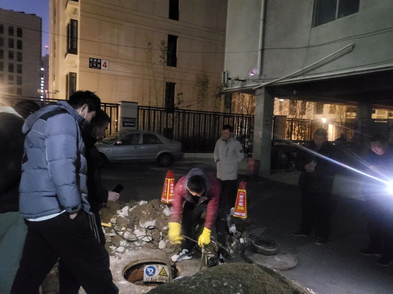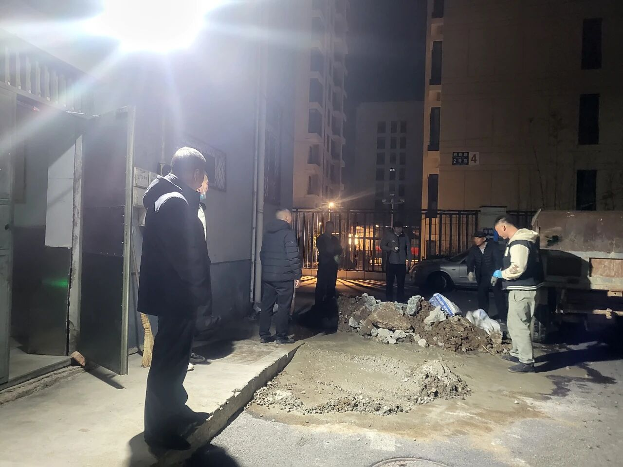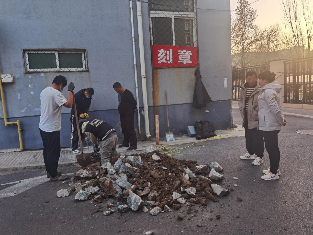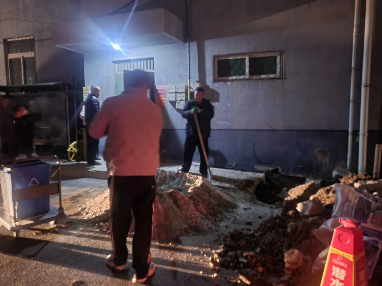 11月29日,社区接到府前西街7号楼4单元居民反映,家中出现污水倒灌情况。社区工作人员高度重视,立即启动应急响应机制,第一时间联动专业维修队伍赶赴现场开展全面排查。经细致检测,明确问题根源为楼栋地下主管道堵塞。因堵塞位置较深、淤积物顽固,常规疏通手段难以彻底清除。社区联合维修单位开展专业论证后,最终确定采用破开路面检修地下管道的施工方案,从根本上消除管道堵塞隐患。