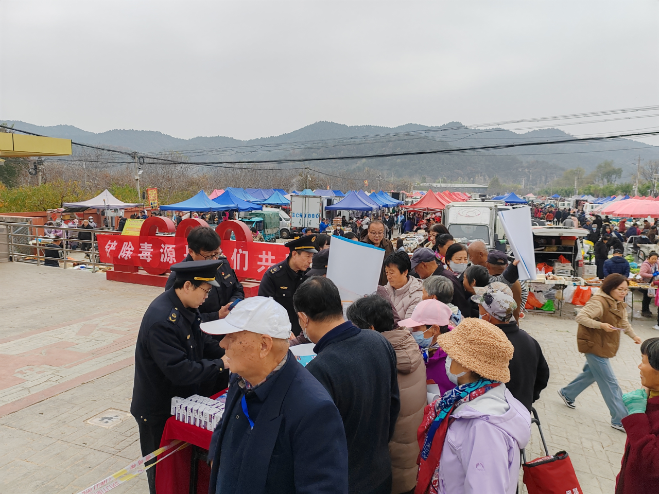 为进一步增强广大群众识毒、防毒、拒毒意识,近日,区农业农村局农业综合执法大队联合金海湖镇政府,走进靠山集大集开展“禁毒铲毒”普法宣传活动。