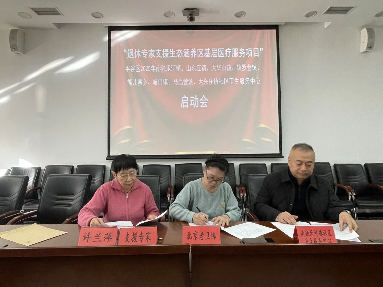 启动大会上,北京老卫协、支援专家与平谷区受援社区卫生服务中心签署三方合作协议,明确了工作职责与协作机制。退休专家将以“精准对接、长效帮扶、能力提升”为目标,通过定期出诊、临床带教、慢性病管理讲座、入村巡诊等多元形式,重点提升基层在糖尿病、心血管疾病、中医诊疗等重点领域的服务能力。项目创新采用“1+2+N”帮扶模式,以单个社区卫生服务中心为主战场,辐射带动周边多个基层医疗机构协同发展。
