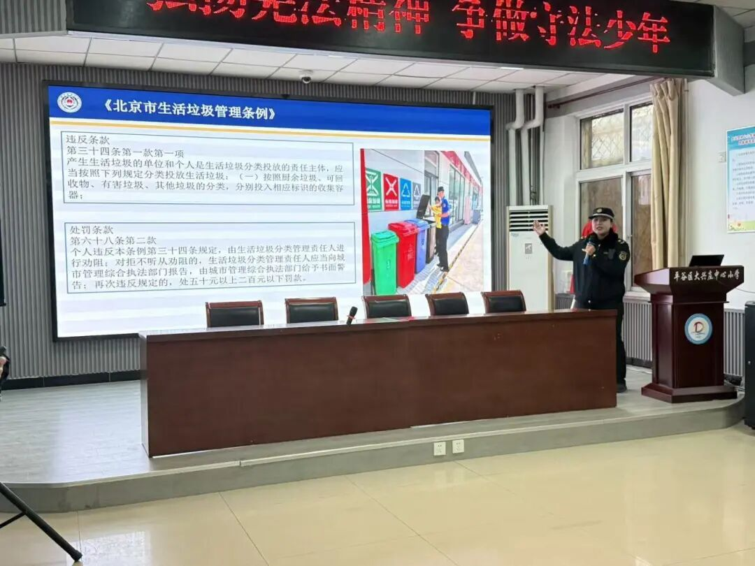 大兴庄镇综合行政执法队的两位年轻执法队员带来一堂《垃圾分类进校园 童心同行助环保》的垃圾分类趣味微讲座,通过为什么进行垃圾分类、如何进行垃圾分类、不进行垃圾分类应承担的法律责任等方面进行深入浅出的讲解,并带动同学们进行有奖问答、互动游戏,同学们全神贯注、踊跃答题、积极互动,将现场气氛推向高潮。