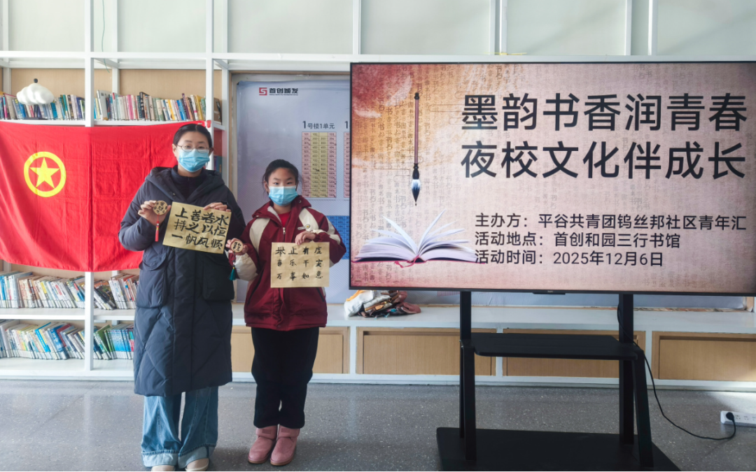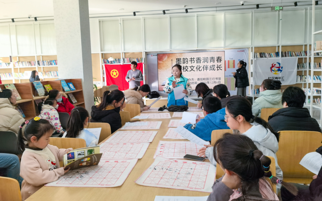 为落实新兴领域团组织建设“两个覆盖”部署,弘扬中华优秀传统文化,丰富辖区新兴领域团组织青年的精神文化生活。12月6日,平谷共青团钨丝邦社区青年汇组织20余名新兴领域团组织青年走进首创和园三行书馆,成功举办了“墨韵书香润青春 夜校文化伴成长”主题夜校活动。活动旨在通过沉浸式的书法体验与经典阅读,为新兴领域团组织青年搭建学习交流的平台,引导青年在笔墨纸砚间感悟文化魅力,提升综合素养,营造好学乐学的社区氛围,拉近团组织与青年的联结纽带。
