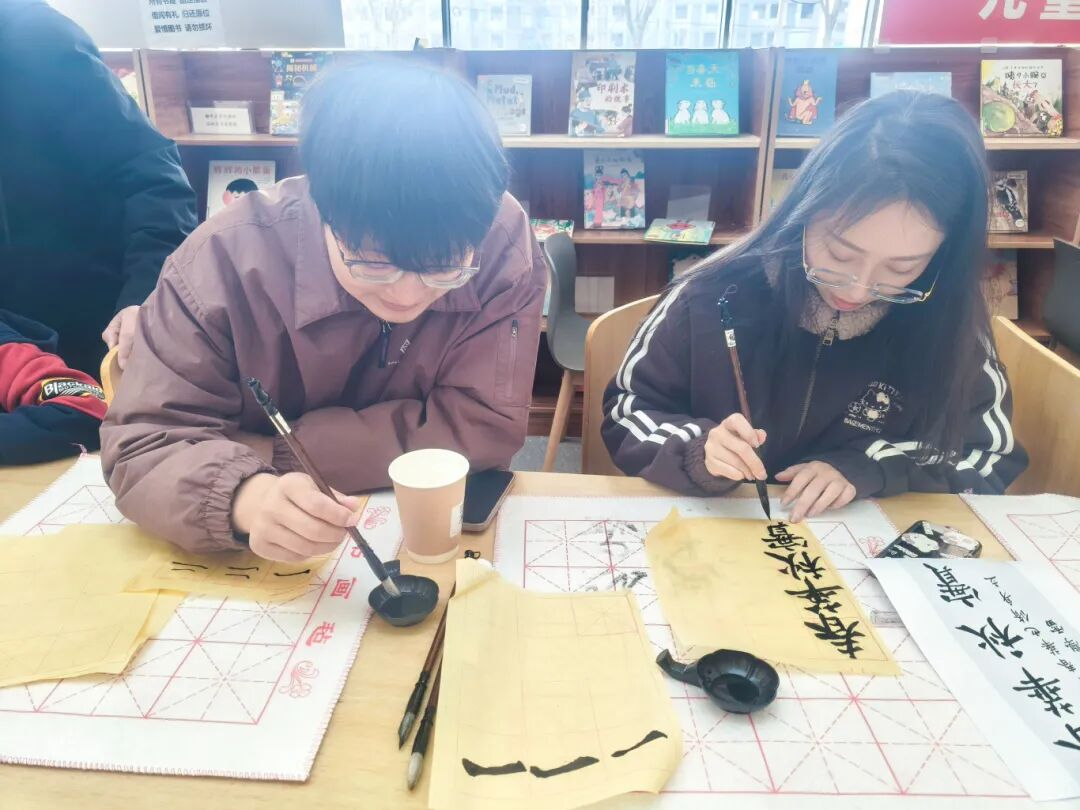 最后的“创意创作”阶段,青年们将书法艺术融入日常,在空白书签上精心书写自己喜欢的格言诗词,并加以简单点缀,制作成独具个性的文化书签。作品展示区内,一幅幅虽显稚嫩却充满诚意的书法习作和创意书签排列开来,大家互相观摩、交流心得,陈老师的专业点评更让青年们受益匪浅,活动在书香文化的氛围中圆满结束。