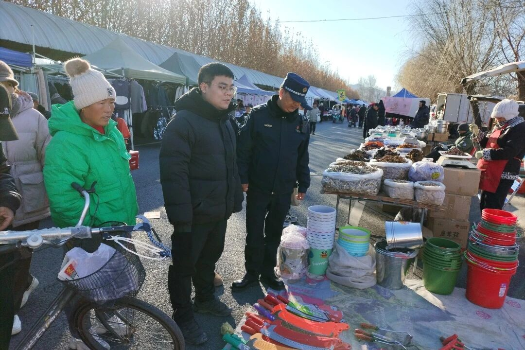 为贯彻落实会议精神,加强野生动物保护工作力度,在12月4日南独乐河大集开市当日,镇林业办公室联合综合执法队开展专项检查。执法人员重点核查五金摊位非法捕猎工具售卖情况、生肉摊位肉类品种来源,同步向商户宣讲法律法规,筑牢经营主体责任防线。