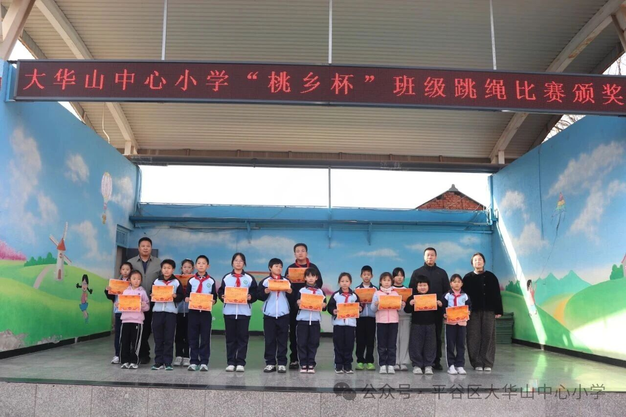 为深入贯彻“五育并举”教育理念,进一步丰富校园文化生活,创新体育活动形式,全面提升学生的手脑协调能力、团队协作意识和集体责任感,大华山中心小学特举办“一带一”趣味跳绳班级赛。让每一位孩子在运动中体验合作的力量,在欢笑中感受团结的真谛。本次比赛由谭校长亲自鸣哨开赛,并在闭幕式上为获奖班级颁发奖状。