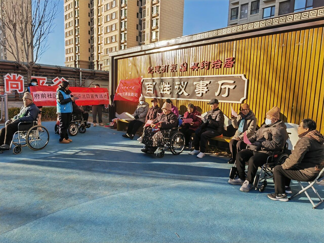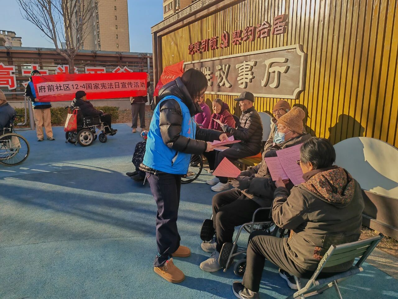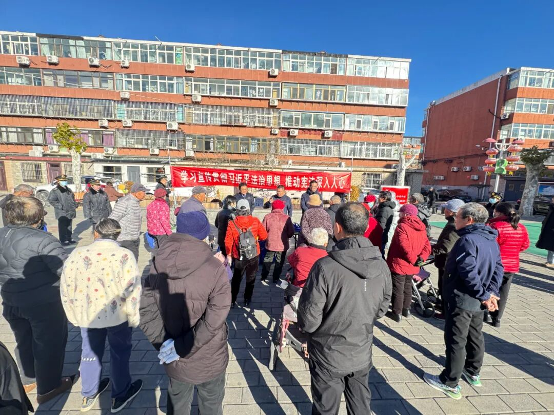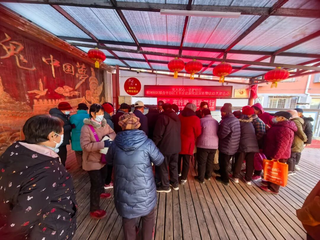 社区联合区司法局、区卫生健康监督所、共建单位平谷区法院王辛庄法庭、滨河街道综合行政执法队开展主题普法宣传,把实用法律服务送到居民身边。普法宣讲团深入社区,聚焦婚姻家庭、财产继承、劳动保障、老年人权益保护等居民高频法律问题,通过案例剖析、法条解读的方式,送上通俗易懂的普法“干货”;现场同步发放宪法读本、普法手册等宣传资料600余份,引导居民树立依法办事、遇事找法的法治思维,让法治温暖浸润千家万户。