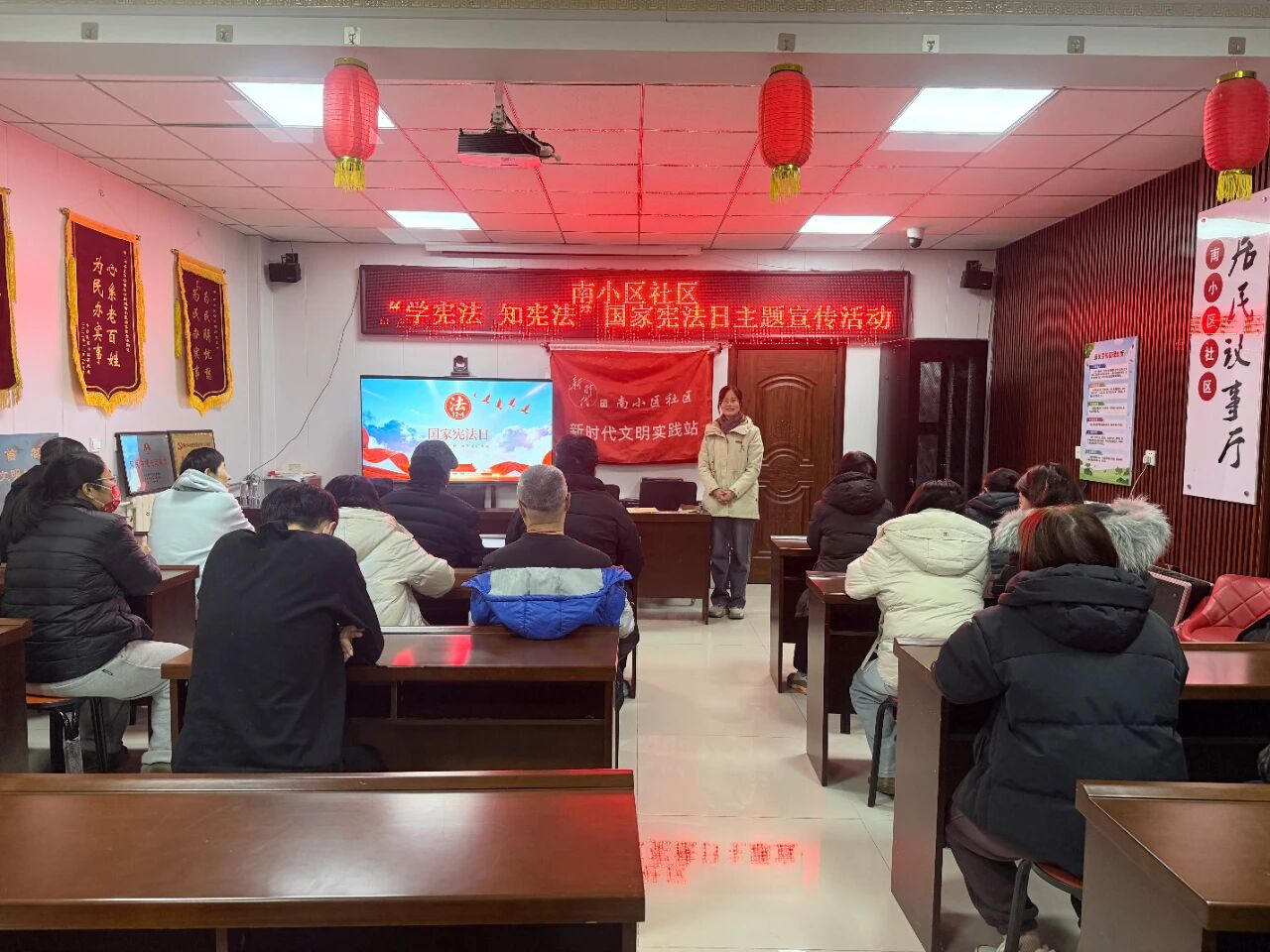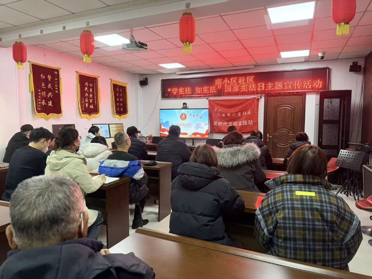 活动以“线上+线下”双线发力扩大宣传覆盖面,让宪法精神深植人心、法治实践落地见效:线上通过微信网格群推送通俗化法条解读与典型案例,让居民随时随地便捷学法、懂法;线下开展专题讲座、播放普法视频,聚焦“宪法与生活”的核心主题,直观解读宪法对公民权利义务的保障,切实提升居民宪法意识;社区工作人员深入楼院、商铺开展“零距离”普法,向居民普及宪法基本知识,提醒大家珍视合法权益、主动学习宪法,让法治理念走进千家万户;向商户重点宣讲宪法、民法典核心条款,引导其坚守守法诚信经营底线,助力商户树立“办事依法、遇事找法、解决纠纷用法”的法治思维,推动以合法途径维护权益、化解经营矛盾。