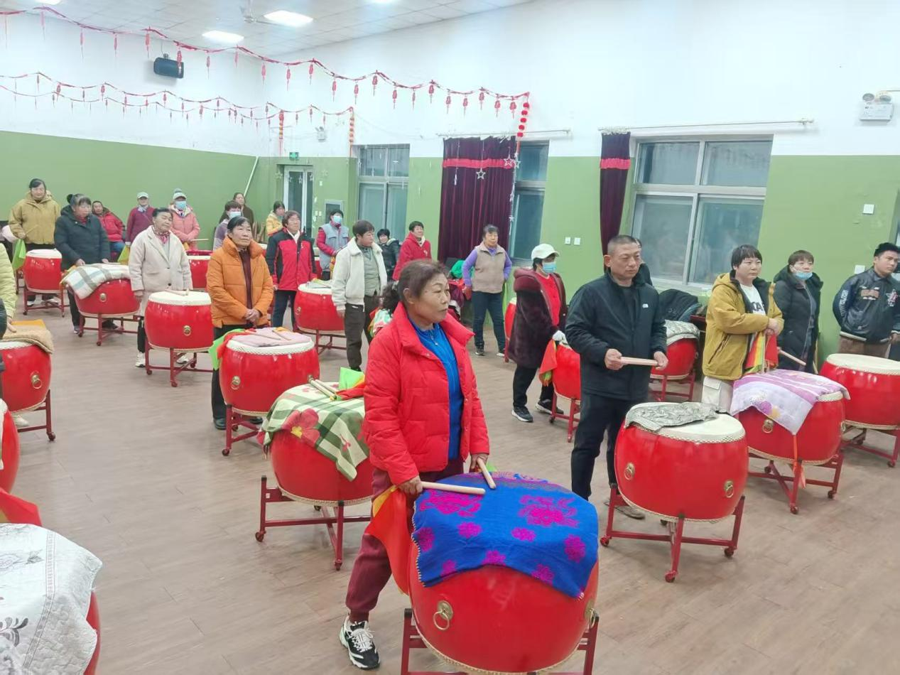 作为刘家店镇的特色民俗项目,大鼓表演历经代代村民的坚守与传承,已有100多年的历史,早已深深镌刻进村民的文化记忆,成为乡村文化标识的重要组成部分。练习现场,大鼓队员们配合默契十足,鼓槌起落间,节奏时而铿锵激昂如惊雷滚过,时而明快灵动似溪水潺潺。鼓点声里,既饱含着传统花会的喜庆奔放,更融入了新时代乡村生活的鲜活气息。大家围拢在一起,相互切磋技法、耐心纠正动作,在一招一式的打磨中精进技艺,不仅锻炼了身体,更在协作互动中拉近了邻里距离,增进了彼此情谊,让文明新风在潜移默化中浸润人心。