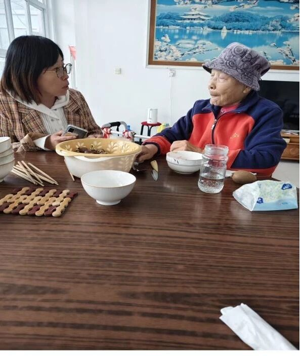 “每周一次的探访,从来不是走形式。” 这是驿站探访员们的共识。村里的重度失能老人周某常年卧床,全靠患糖尿病的老伴照料。一次入户时,探访员发现家门紧闭,多次致电后周某老伴语无伦次,当即联系家属破门而入,及时将突发脑梗的老人送医,由于发现及时,老人脑梗情况得到有效治疗,脱离生命危险。除了应急守护,陪老人唠家常、检查药品、测量血压、排查安全隐患,这些看似微不足道的举动,串联起居家养老的“安全线”,让独居、失能老人的生活有人管、有人念。