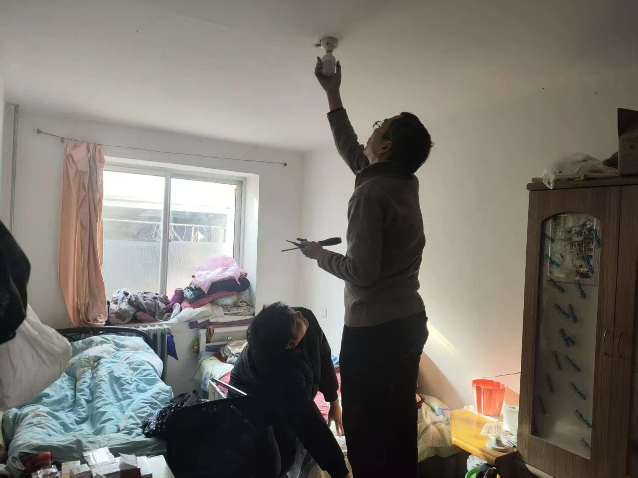 空巢老人家中灯泡损坏,因行动不便无法自行更换。南小区社区工作人员接到老人诉求后,第一时间响应求助,迅速联系志愿者,一同走进空巢老人家中。志愿者仔细检查卧室灯具故障,更换老化零件、调试线路连接,用专业技能为老人点亮了明亮的卧室灯光。这些看似微小的善举,对于空巢老人来说意义非凡。这不仅方便了老人的日常生活,更让老人与社区建立起紧密联系,确保他们遇到困难时能及时联系社区并获得帮助。