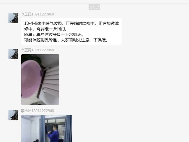 事件发生在上周五傍晚。17点13分,社区值班人员方玉接到居民紧急来电,反映楼上漏水,水流湍急,情况紧急。挂断电话后,包楼人员李玉昆与刘蕊迅速动身,第一时间赶到现场查看,并联系了楼上居民吴女士。