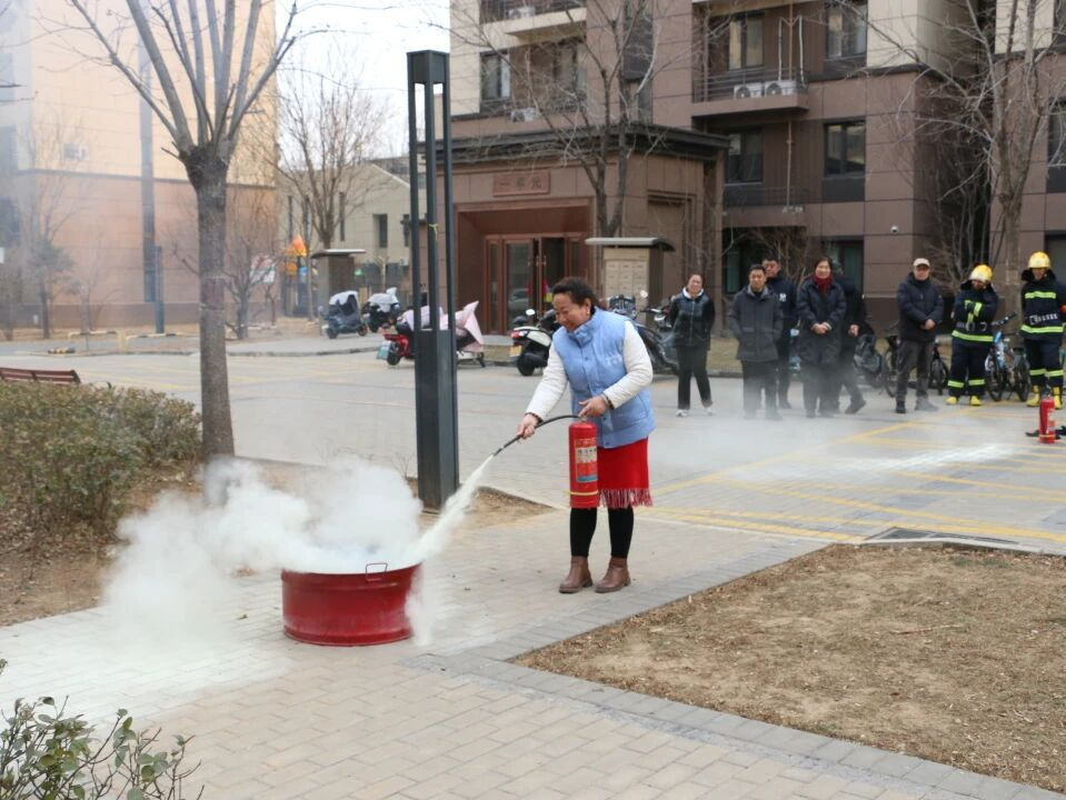 在理论宣传基础上,活动组织开展实地消防应急演练。社区物业工作人员、网格员率先参与,重点针对初期火灾扑救技巧、应急疏散组织程序等内容进行模拟操练。通过实战化演练,有效检验并提升了社区一线人员的快速响应和协同处置能力,为应对突发火情打下坚实基础。