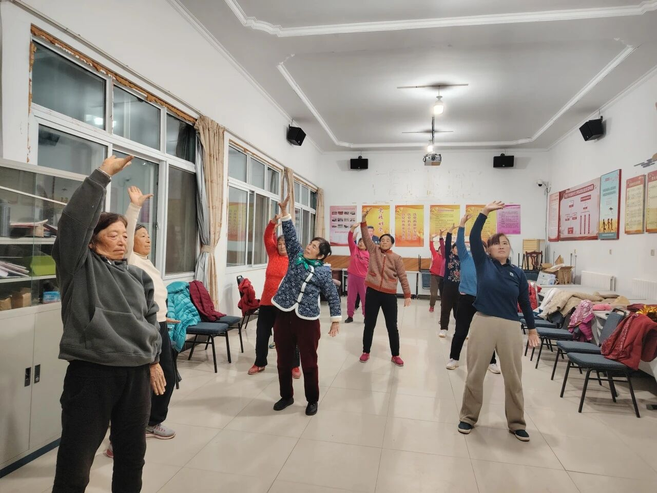 辛庄子村新时代文明实践站里,农闲时节的活动格外丰富。八段锦练习是这里的“热门项目”,村民们不约而同地来到这里,在带队老师的指导下认真练习,大家排成整齐的队列,抬手、转身、弯腰,每个动作都力求标准规范,邻里之间相互纠正动作、交流练习心得,原本不怎么熟悉的村民也渐渐熟络起来。除此之外,实践站还常会举办书法活动,吸引了不少书法爱好者欢聚一堂,大家铺纸研墨、挥毫泼墨,或临摹经典碑帖,或创作原创作品,彼此交流笔法技巧、探讨书法心得,沉浸在笔墨书香的乐趣之中。无论是八段锦练习还是书法活动,都让实践站成为了邻里间增进感情、传递善意的“连心桥梁”,既帮助大家调理身体、陶冶情操,更让乡村的人情味愈发浓厚。