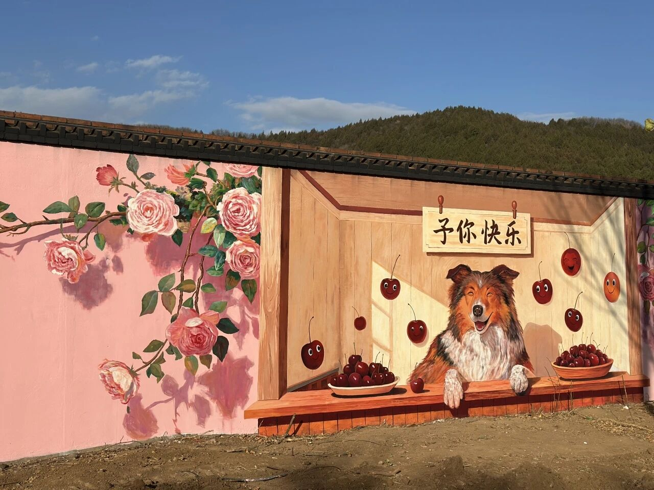 每一笔色彩都饱含巧思,每一个场景都充满故事感。彩绘不仅还原了樱桃园的生机盎然,更将“予你快乐”的理念融入其中。在这里,可以与萌宠彩绘合影,沿着彩绘墙漫步,感受风吹过的惬意。