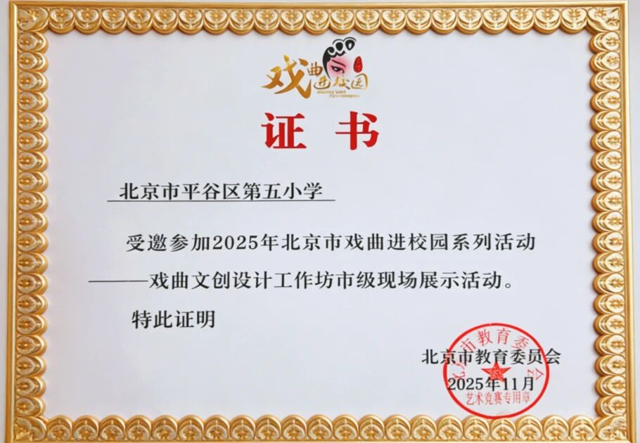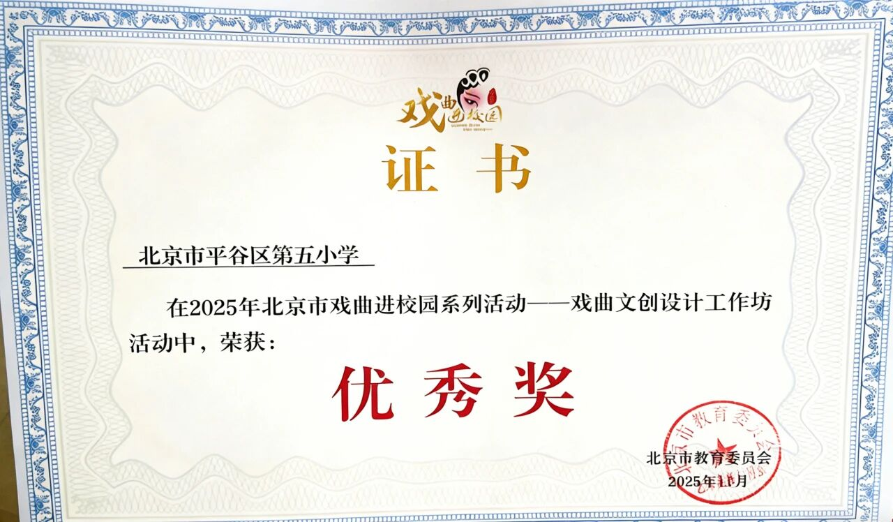 捷报传来!在刚刚落幕的2025年北京市“戏曲文创设计工作坊”系列活动中,我校“戏韵童心”精品社团携原创戏曲文创作品惊艳亮相,并荣获市级“优秀奖”!这不仅是一份沉甸甸的荣誉,更是平谷五小在传统文化教育与创新美育领域深耕不辍的精彩缩影。现在,就让我们一起穿越回那个充满戏韵与创意的现场,感受平谷五小学子的文化自信与创造活力!