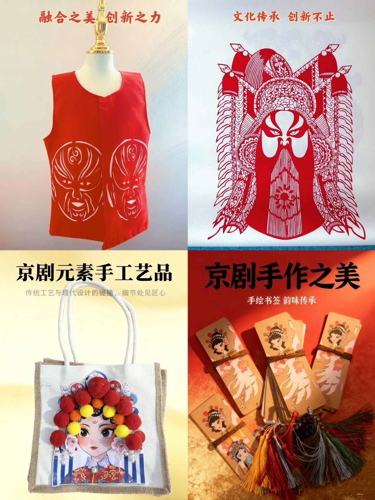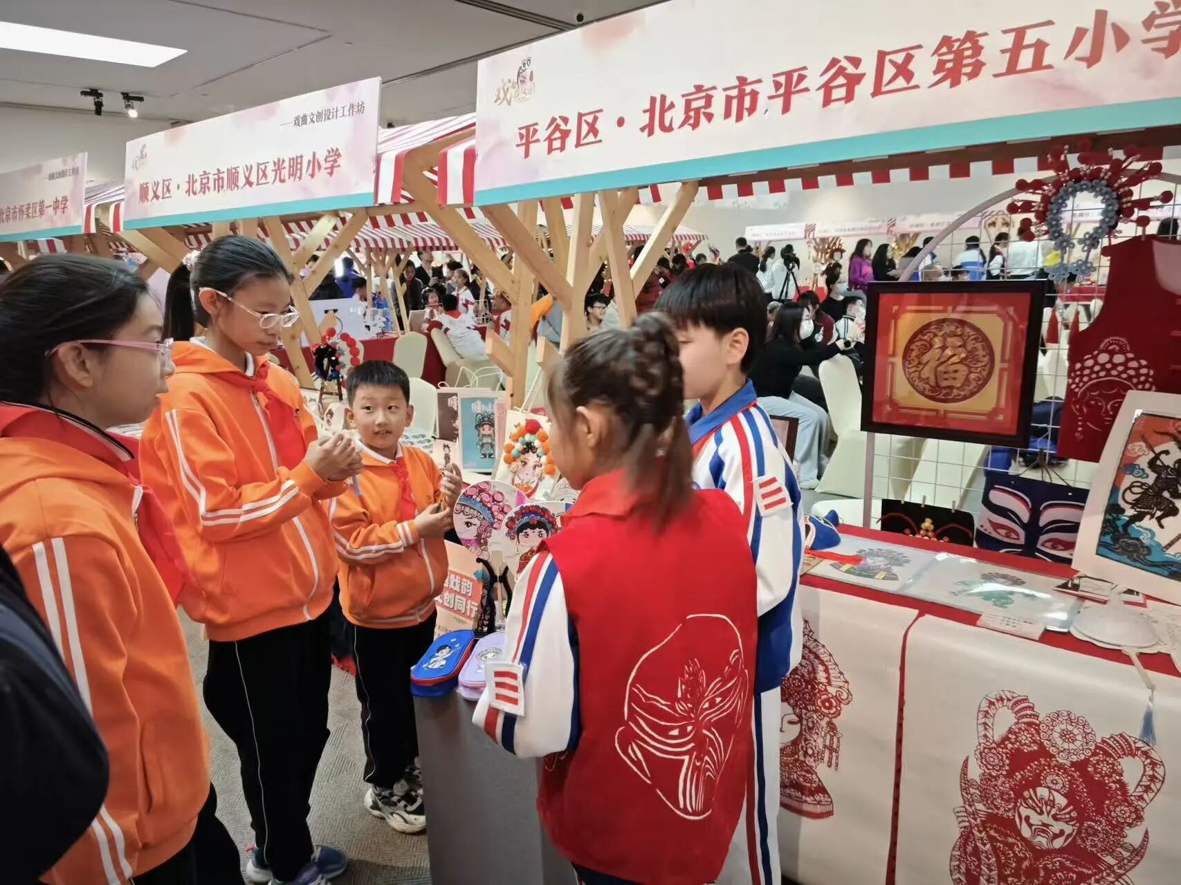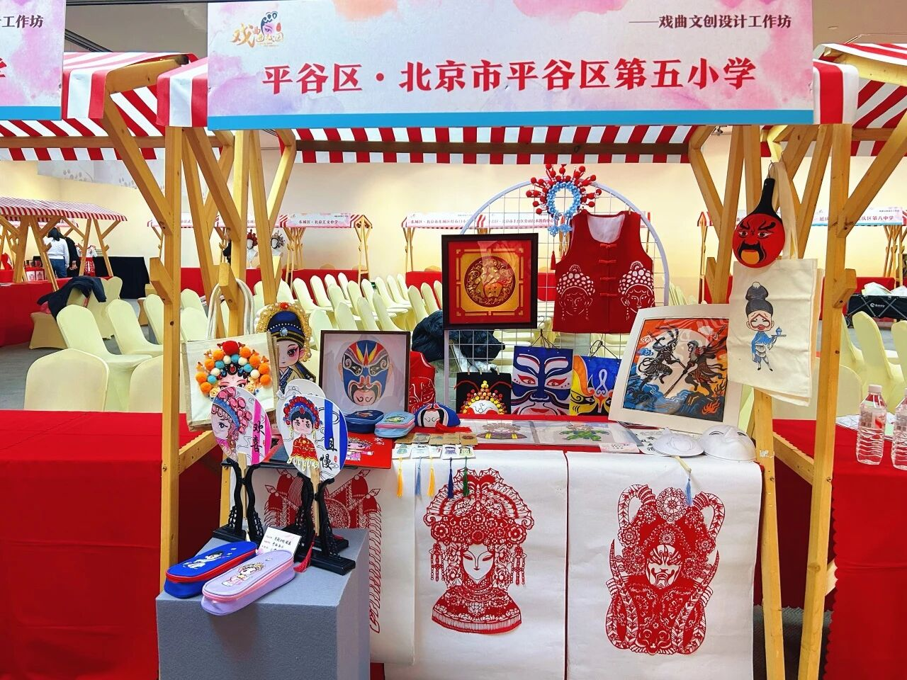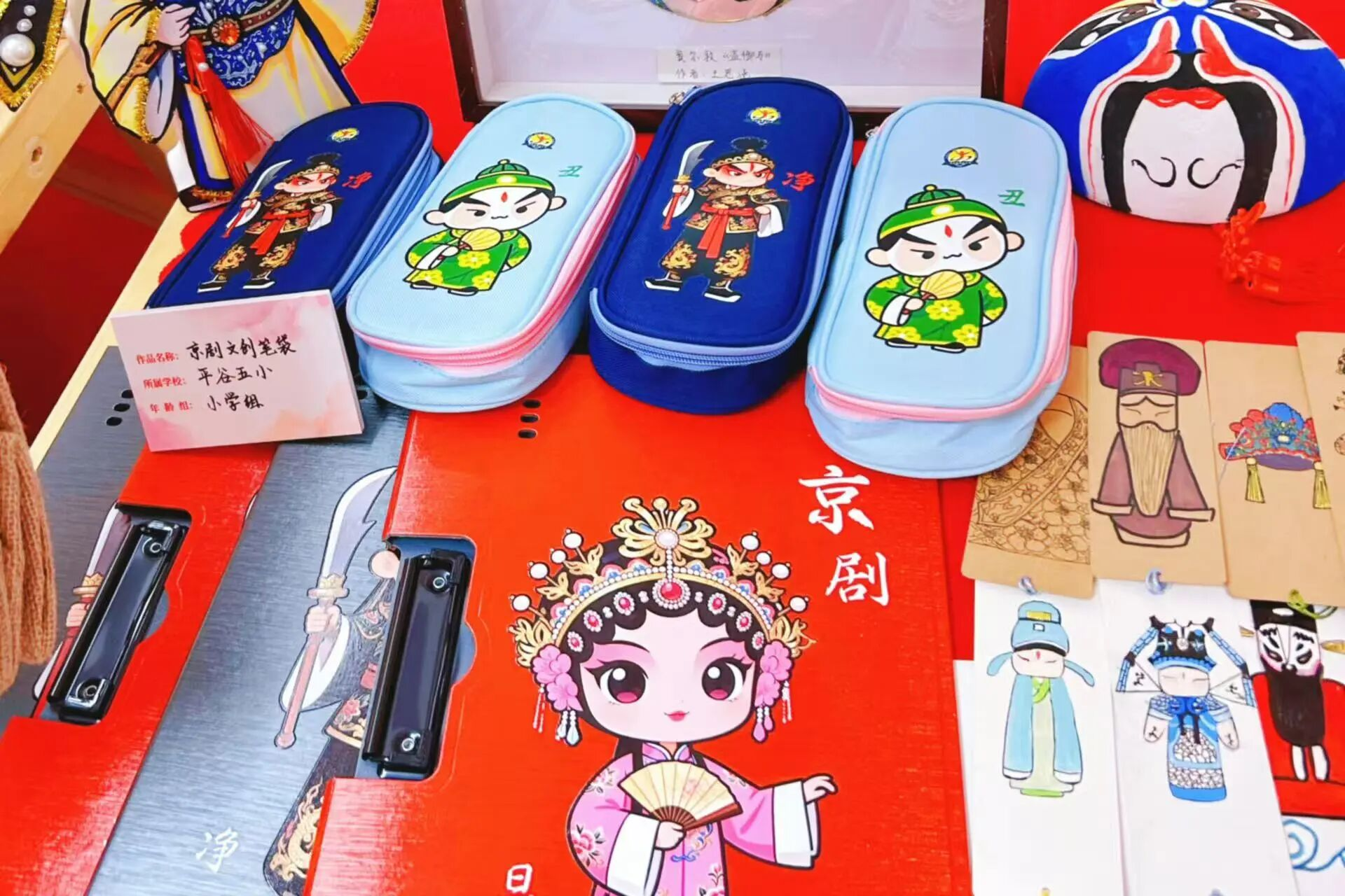 琳琅满目的文创产品:从绘有精美脸谱的团扇、笔记本,到创意十足的戏曲人物粘土玩偶、头饰工艺品,每一件都凝聚着同学们的奇思妙想和匠心巧手。