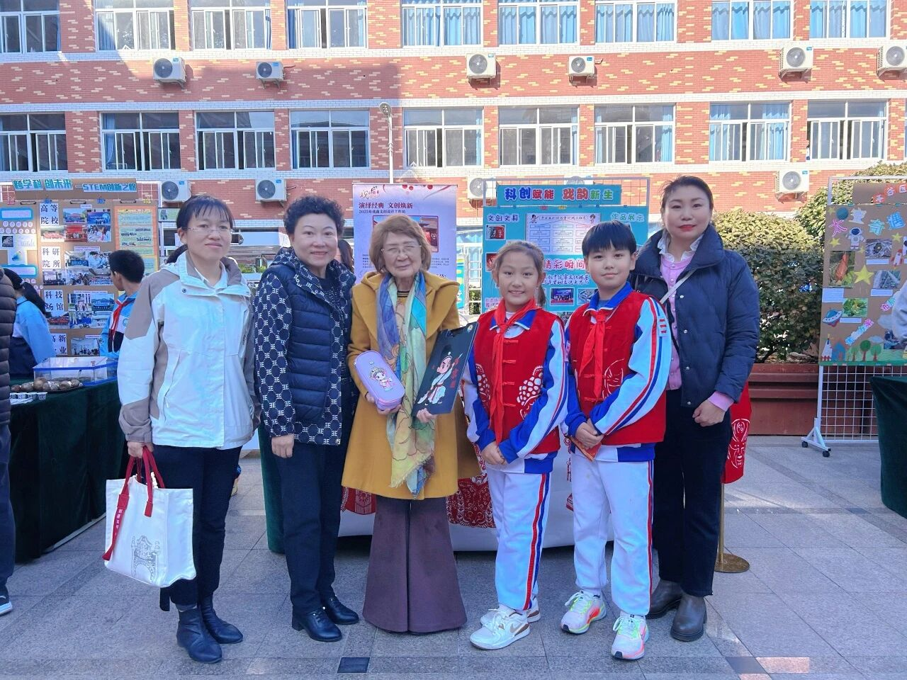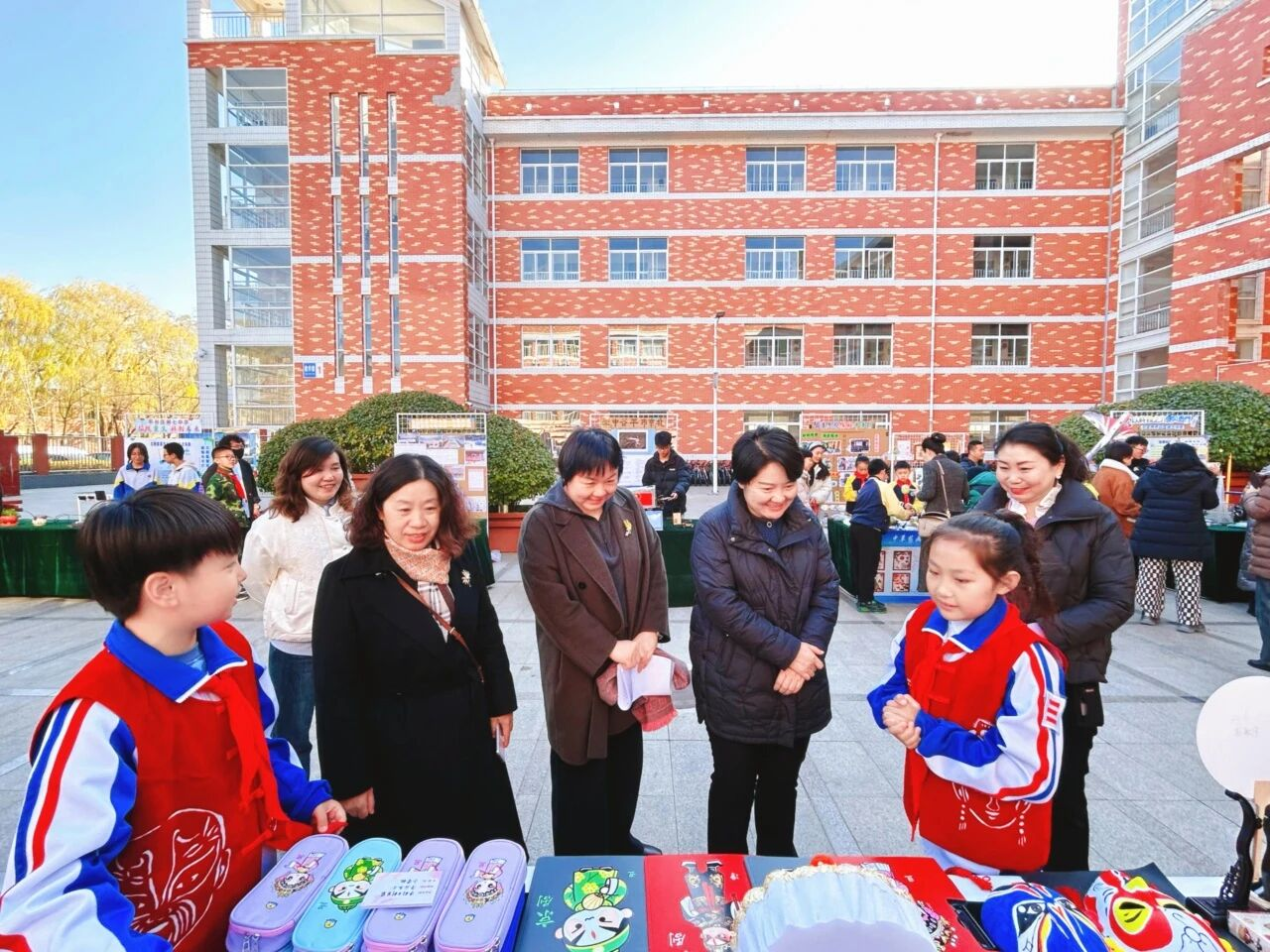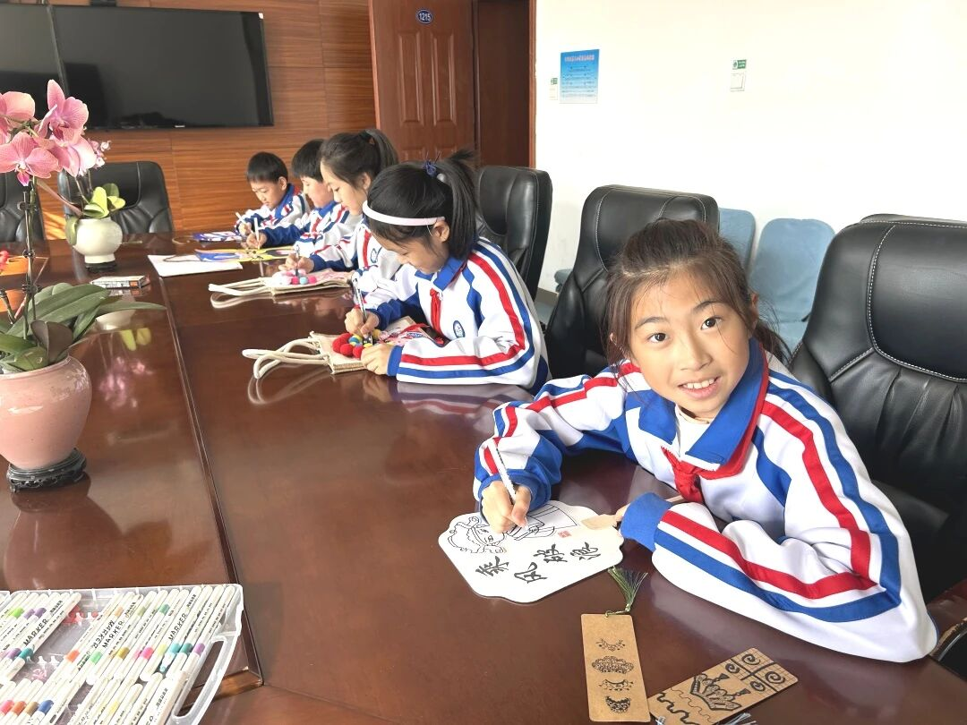 独具特色的摊位设计:红白遮阳棚下,是我们的文化小天地。背景板上贴满了活动的精彩瞬间,桌面上陈列着孩子们的得意之作,吸引了众多嘉宾和师生驻足欣赏。