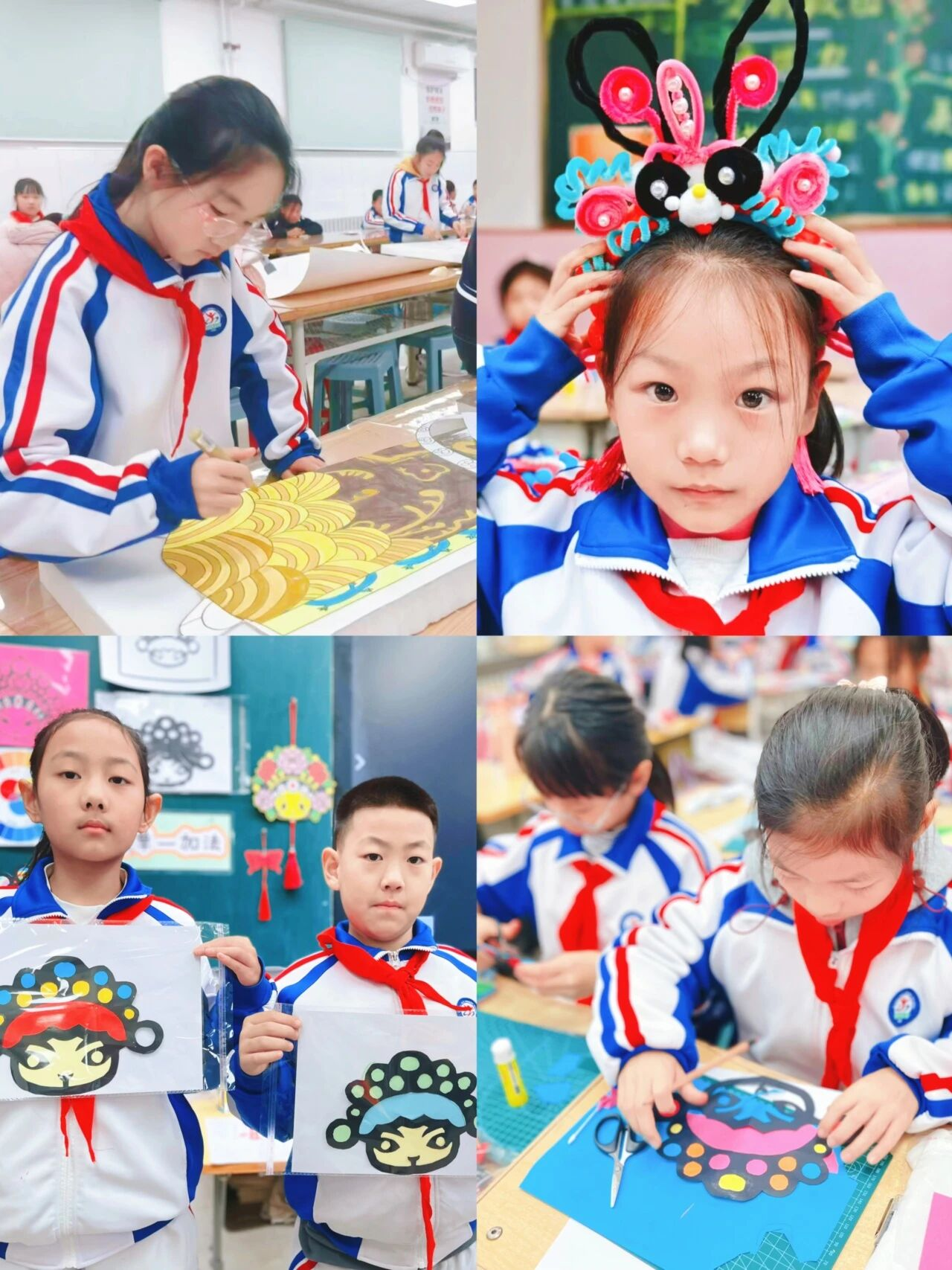 而所有这些闪耀的创意与自信,都源自于那一方日常的课堂。 在平谷五小的社团活动室里,时光仿佛有了别样的韵律。在这里,你能看到手握画笔的孩子正屏息凝神,为一笔脸谱线条反复描摹;能听到手工组的同学们低声讨论,如何让手中的粘土“生旦净丑”更具神采;更能感受到表演组的成员们,为一个亮相、一段念白而挥汗如雨、反复锤炼。
