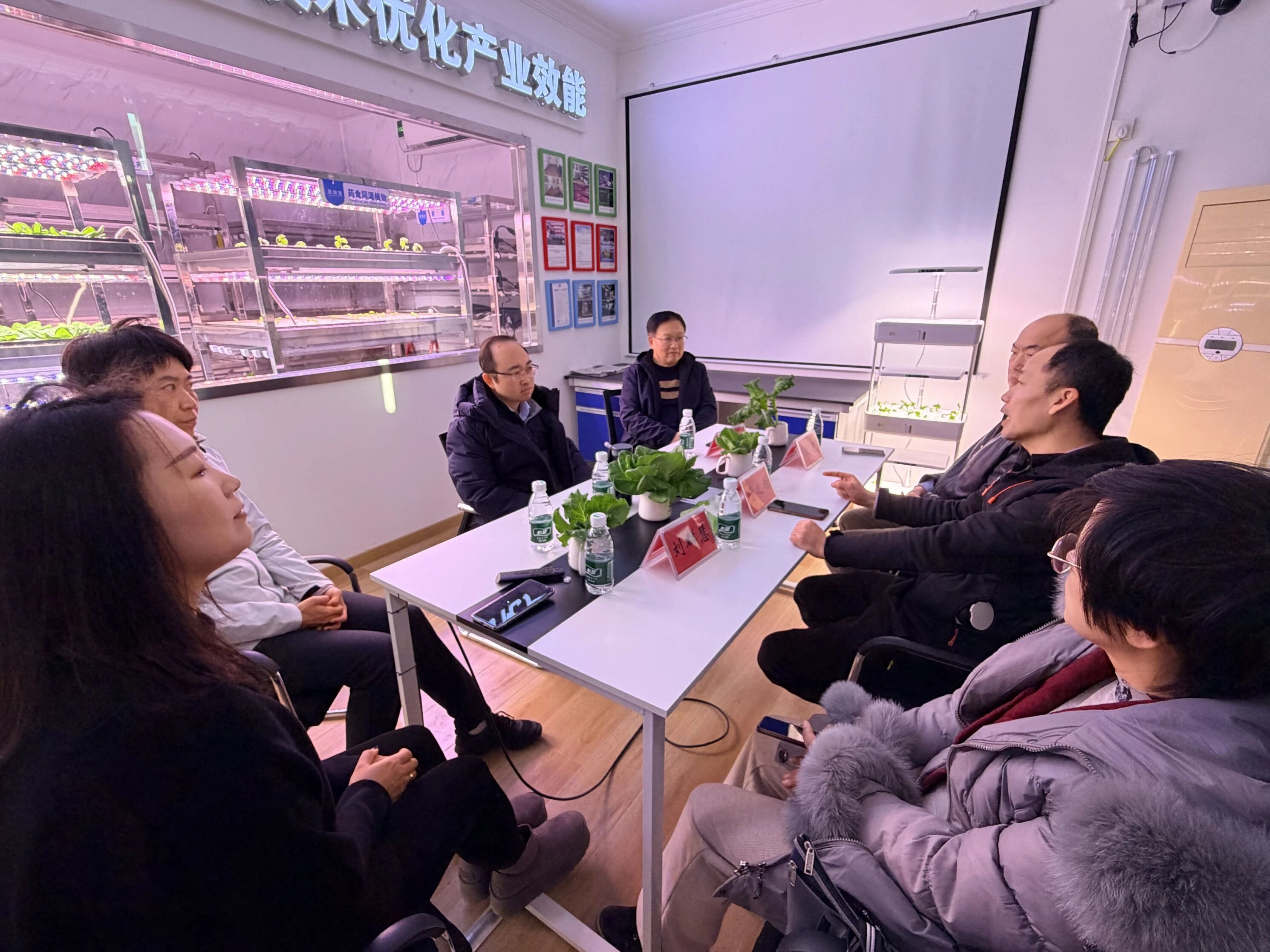 调研组一行在科技小院实地察看了智能化育苗室,详细了解模块化种植设备的多场景应用、“AI光配方”分时补光技术、太阳能光伏绿电供应系统及营养液循环利用等创新实践。领导们重点关注了小院如何通过环保材料改造、精准环境调控等手段实现“一片废叶、一滴废水不出院”,以及每日10公斤以上二氧化碳消纳的生态效益,对其成功获评“零碳植物工厂”认证、打造全国中小型设施农业零碳样板的成效给予高度评价。