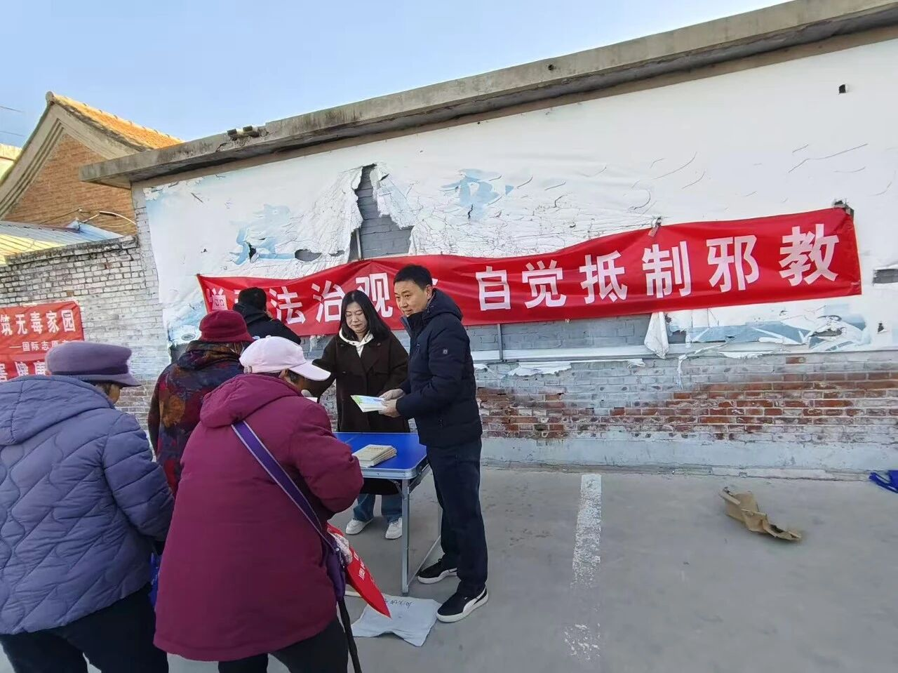 为强化辖区群众反邪意识,筑牢基层反邪教安全防线,聚焦宣传实效,多措并举开展反邪教宣传工作,营造崇尚科学、远离邪教的良好氛围。近日,平谷镇在西鹿角村小公园开展“增强法治观念 自觉抵制邪教”法治宣传活动。