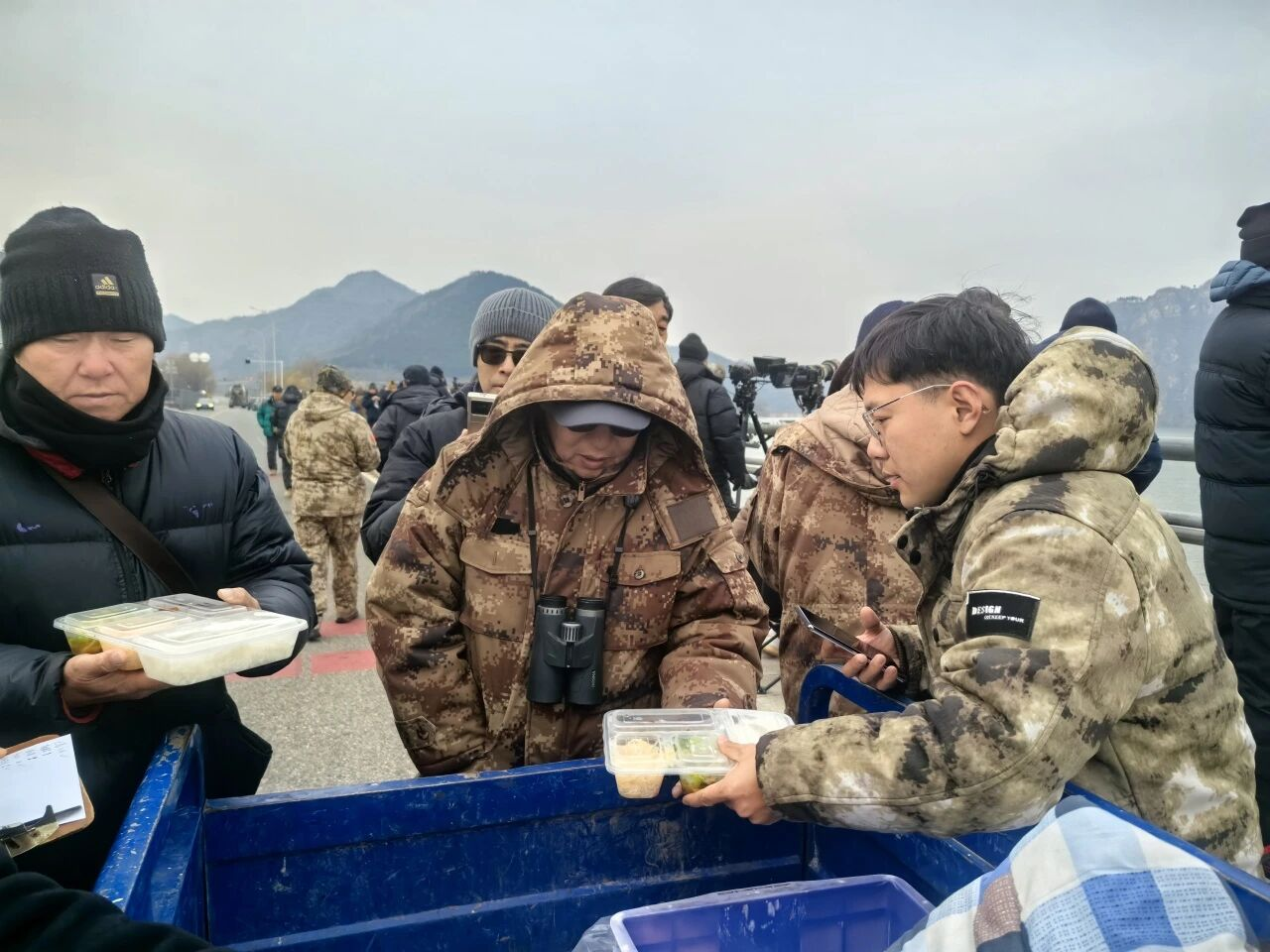在西峪水库观鸟核心区,镇政府精心熬制的小吊梨汤温润香甜,一碗下肚,瞬间驱散户外拍摄的严寒;到了饭点,热气腾腾的暖心盒饭准时供应,荤素搭配的家常味道,解决了鸟友们户外就餐的难题。捧着热汤、吃着盒饭,不少鸟友感叹:“这不仅是观鸟,更是回家般的温暖!”