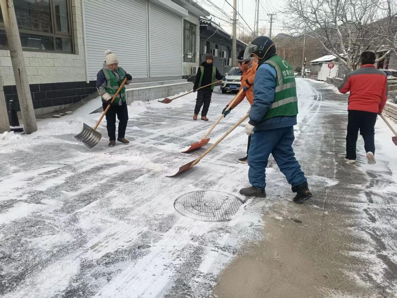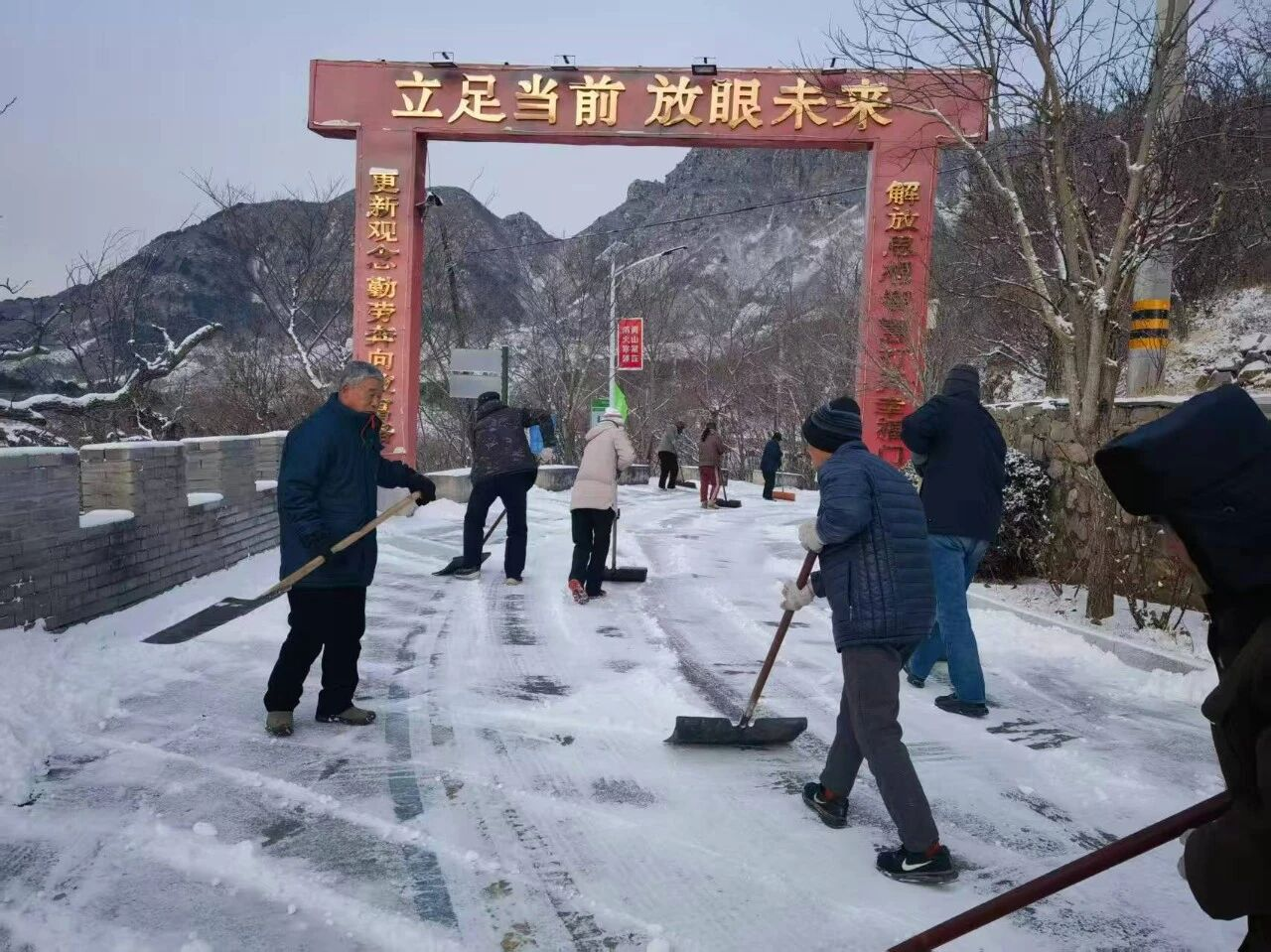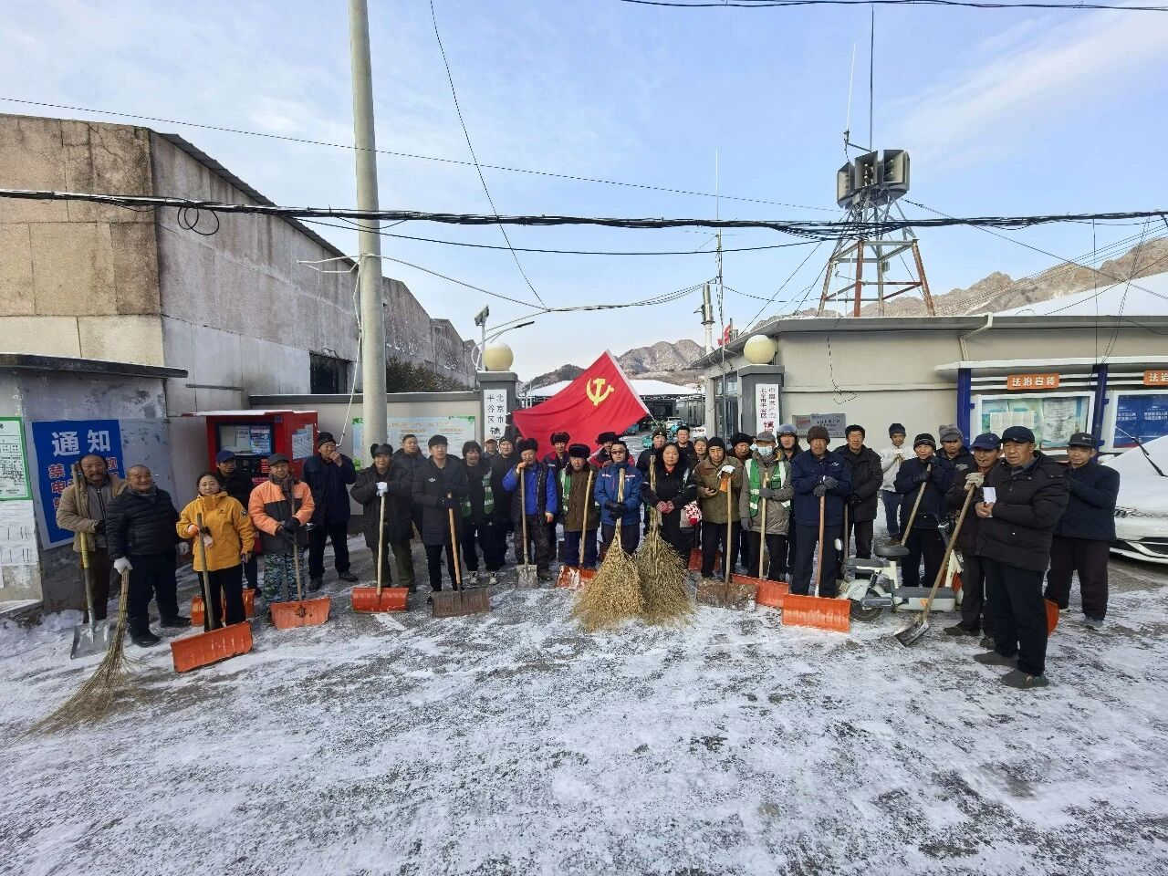 各村党支部充分发挥战斗堡垒作用,广泛动员党员、群众、保洁员等力量,组成多支清雪队伍,对镇域内主要道路、背街小巷的积雪和结冰进行集中清理。党员干部冲锋在前,群众积极参与,大家手持铁锹、扫帚等工具,不畏严寒,齐心协力清除路面积雪,全力保障群众出行安全。