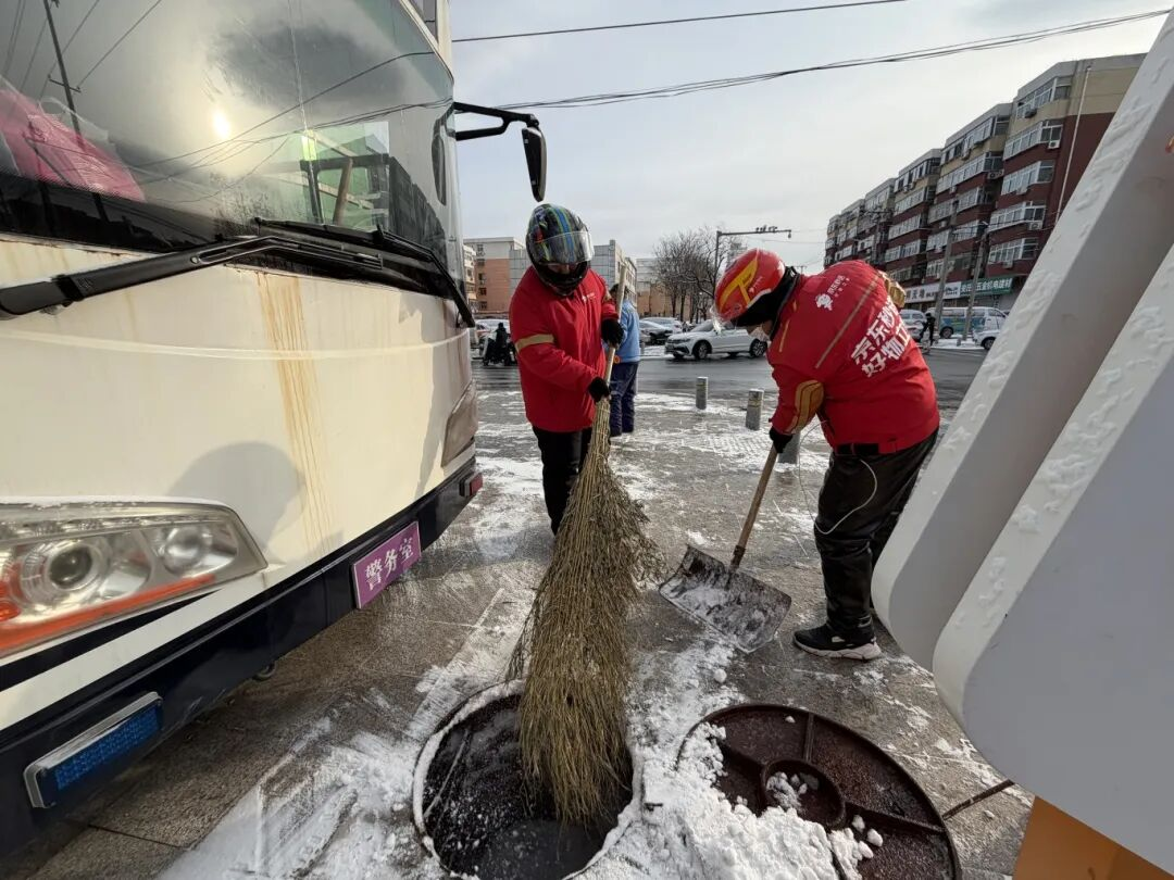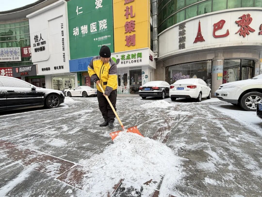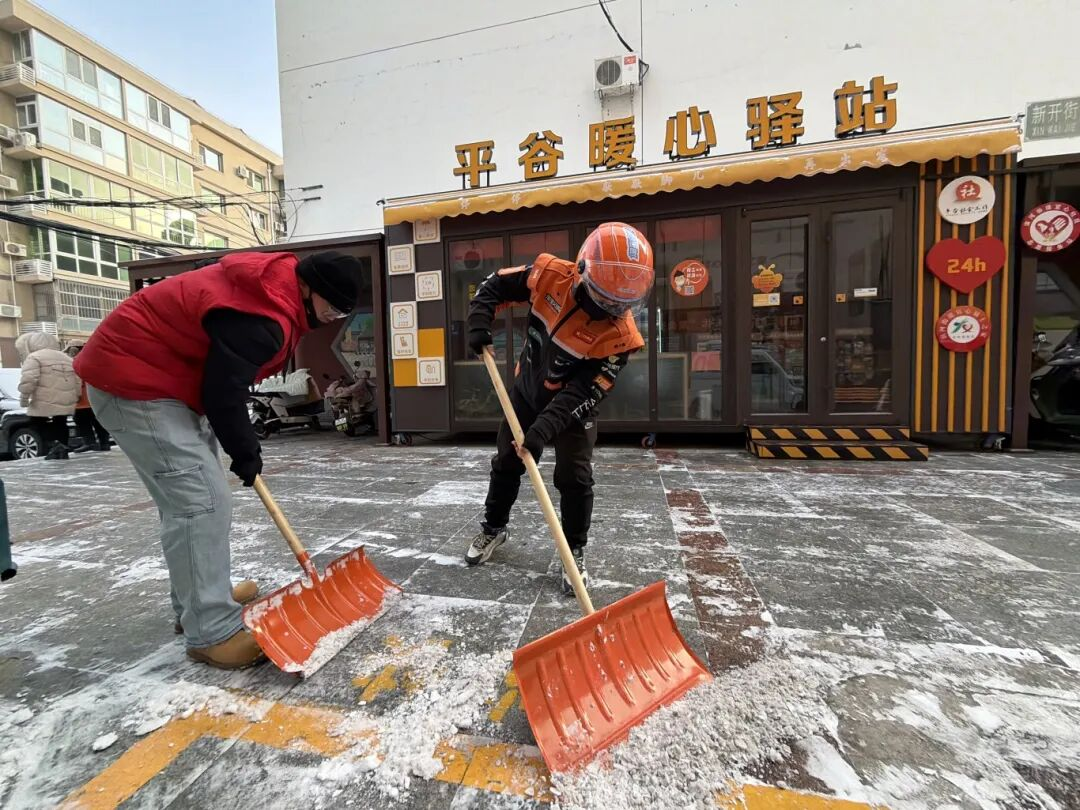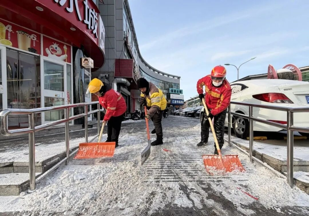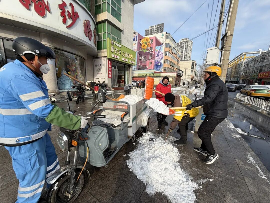 除了清扫驿站门口,“四员先蜂”们还主动担当,自觉践行“顺路帮一把”的志愿精神。有的小哥在送单结束后,特意把楼道门前台阶积雪清扫干净,为老人、小孩出行扫清障碍;有的在步行街等单期间,主动协助周边商户清扫门前积雪,助力商户正常经营;还有的看到路面有积雪堆积,主动加入环卫工人群体,一同清扫主干道,保障道路交通顺畅。
