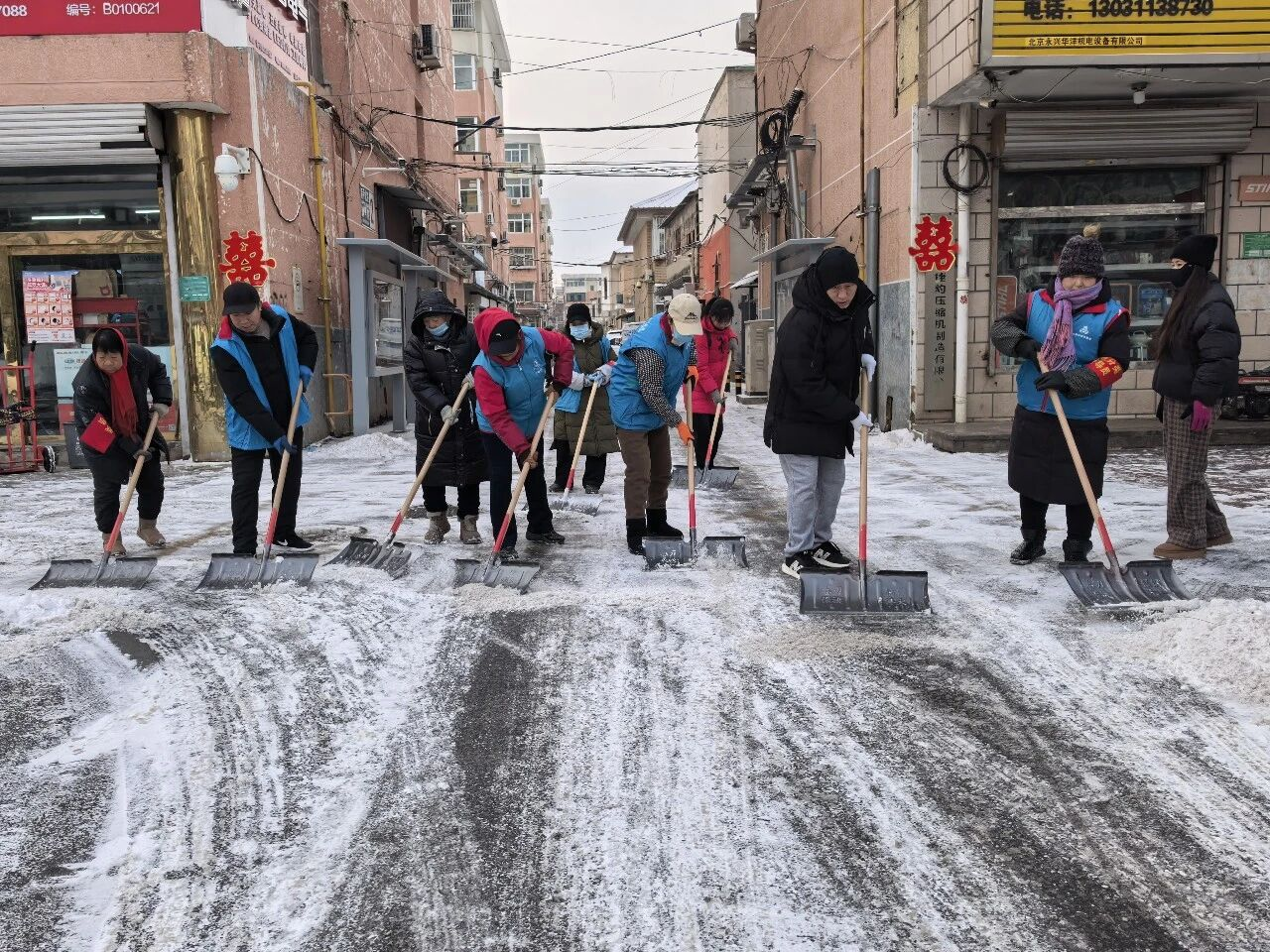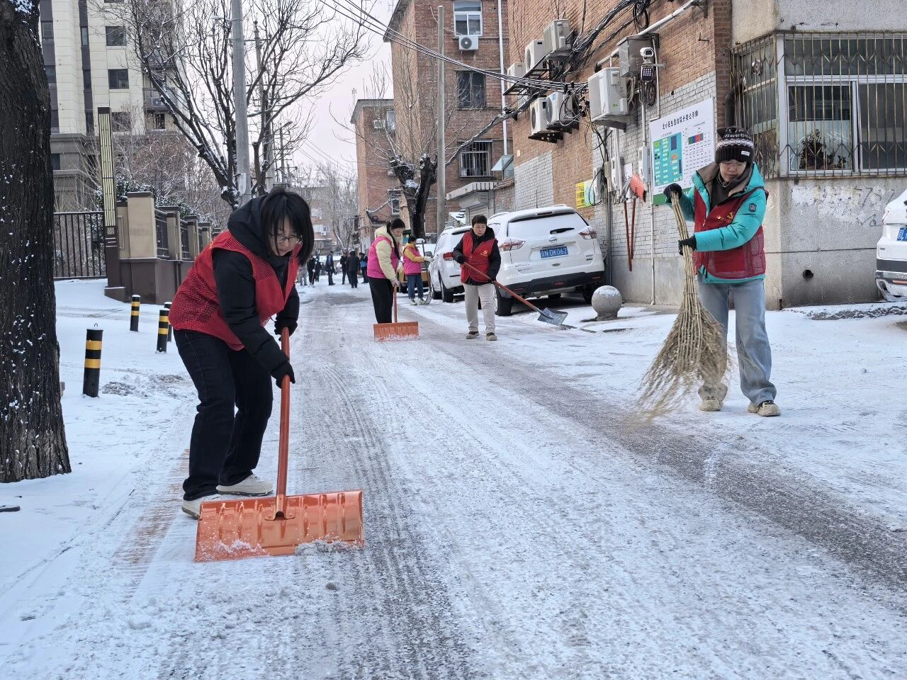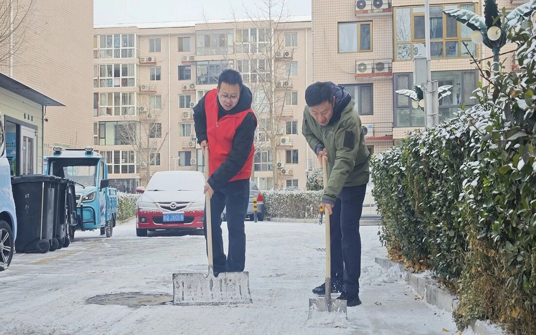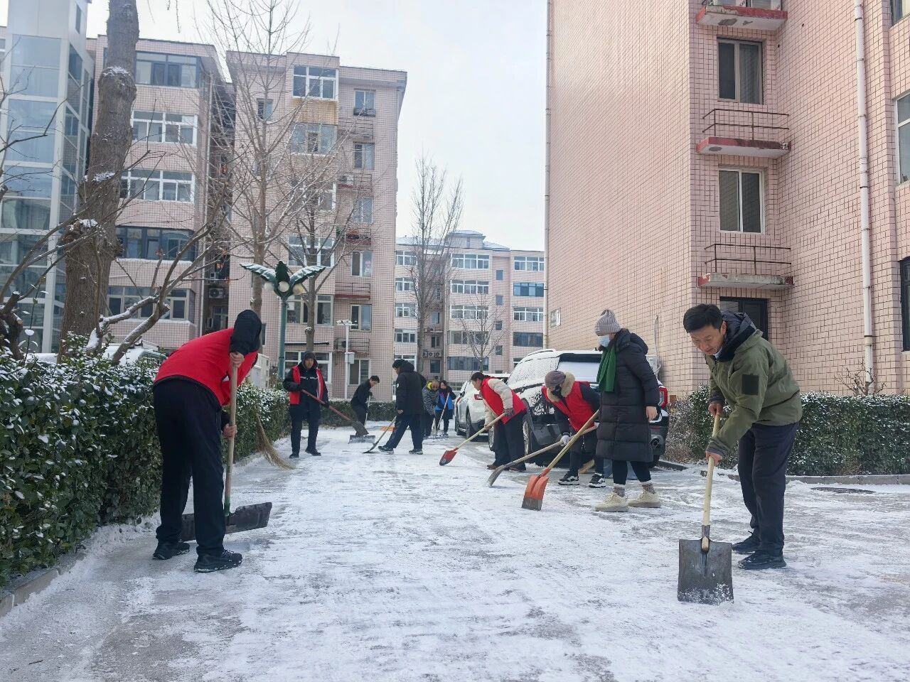 大家手持铁锹、扫帚、雪铲分工协作,默契配合,重点清理小区主次干道、人行步道及公共区域的积雪积冰。近3个小时的齐心奋战后,积雪冰层被集中清理,一条条畅通无阻的“暖心道”“平安路”清晰呈现,为居民出行扫清了障碍。