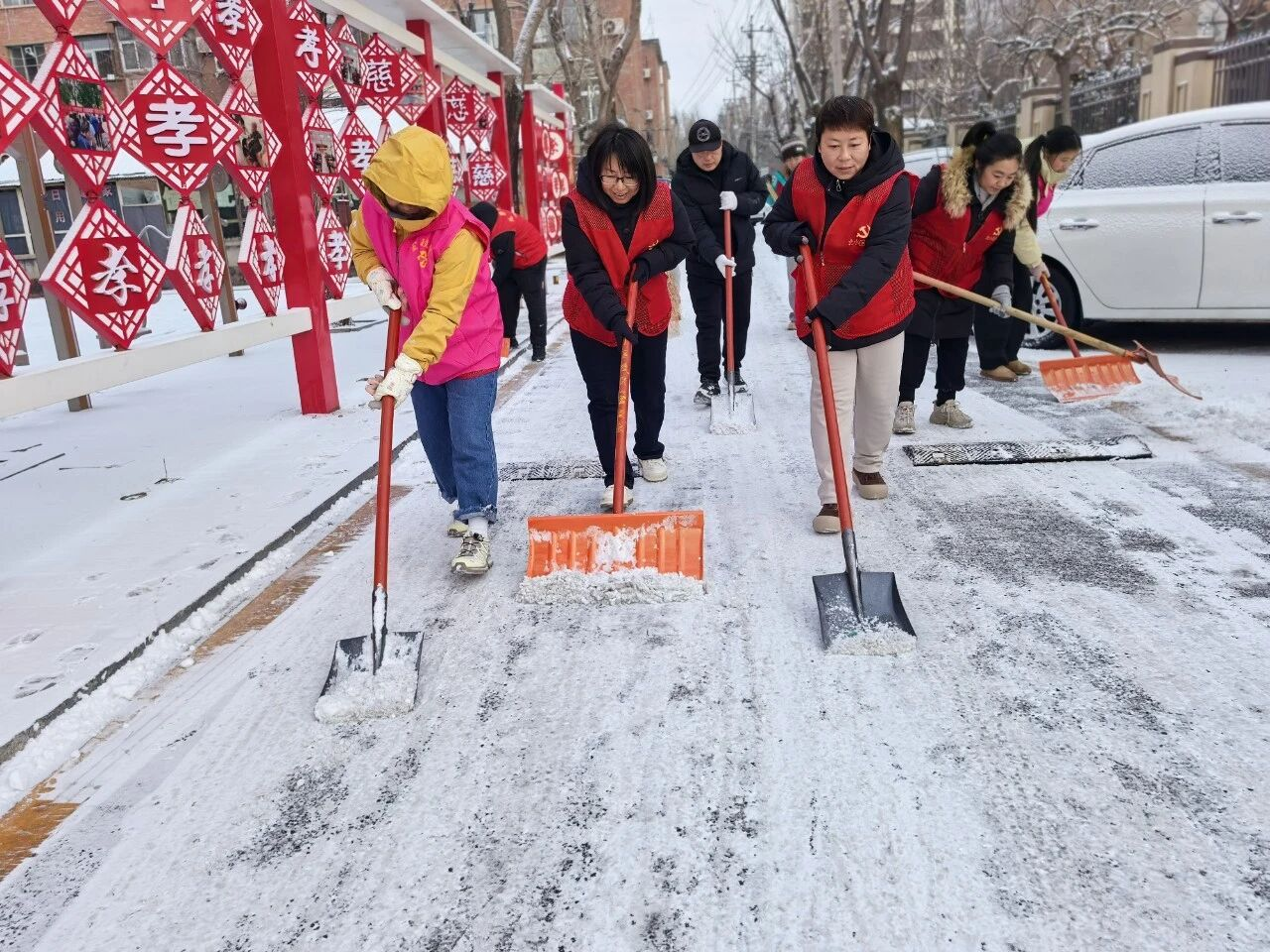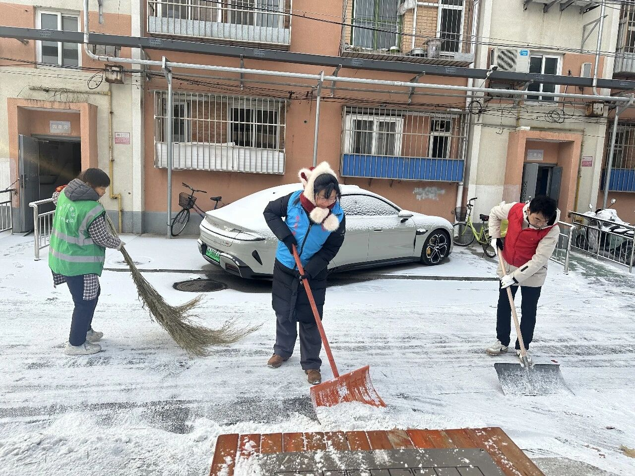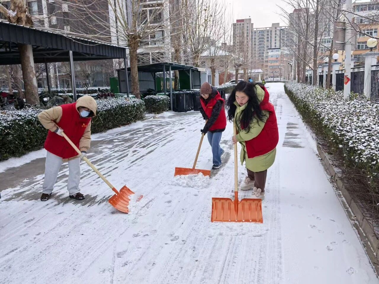 大家手持铁锹、扫帚、雪铲分工协作,默契配合,重点清理小区主次干道、人行步道及公共区域的积雪积冰。近3个小时的齐心奋战后,积雪冰层被集中清理,一条条畅通无阻的“暖心道”“平安路”清晰呈现,为居民出行扫清了障碍。