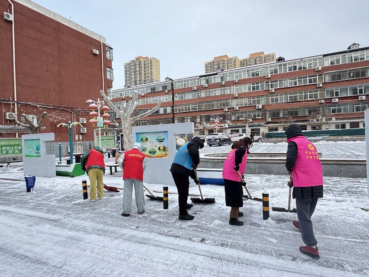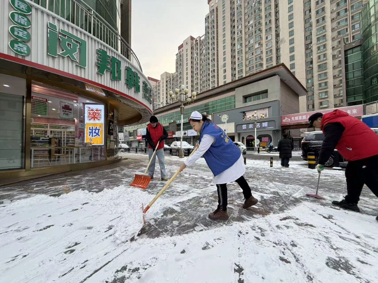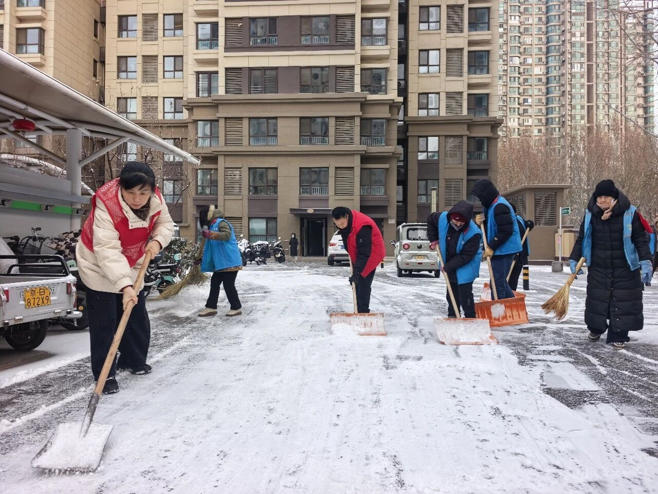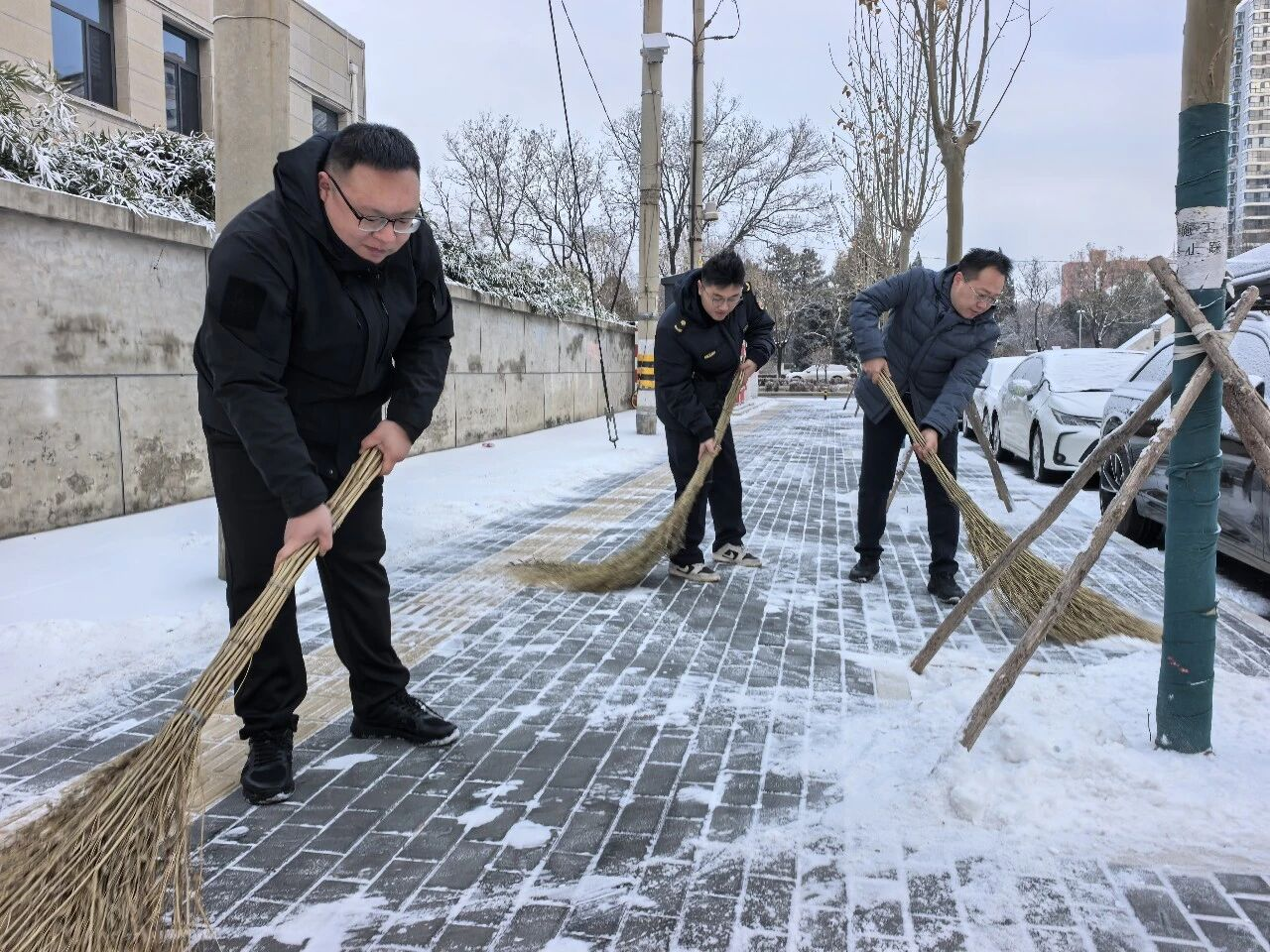 大家手持铁锹、扫帚、雪铲分工协作,默契配合,重点清理小区主次干道、人行步道及公共区域的积雪积冰。近3个小时的齐心奋战后,积雪冰层被集中清理,一条条畅通无阻的“暖心道”“平安路”清晰呈现,为居民出行扫清了障碍。