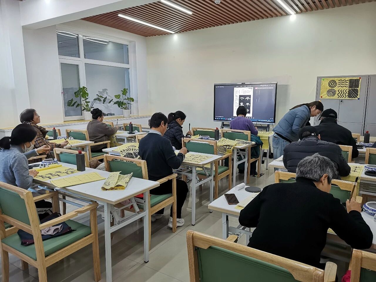 书法老师从基础笔法教起,示范握笔、运笔的正确姿势,讲解横、竖、撇、捺的书写要领。学员们手握毛笔,静心临摹,每一笔都饱含认真。老师穿梭指导,纠正书写细节,分享书法背后的文化故事。墨香萦绕的课堂里,大家不仅提升了书写技能,更在专注创作中寻得内心的平和,让传统文化的种子在温馨家园生根发芽。