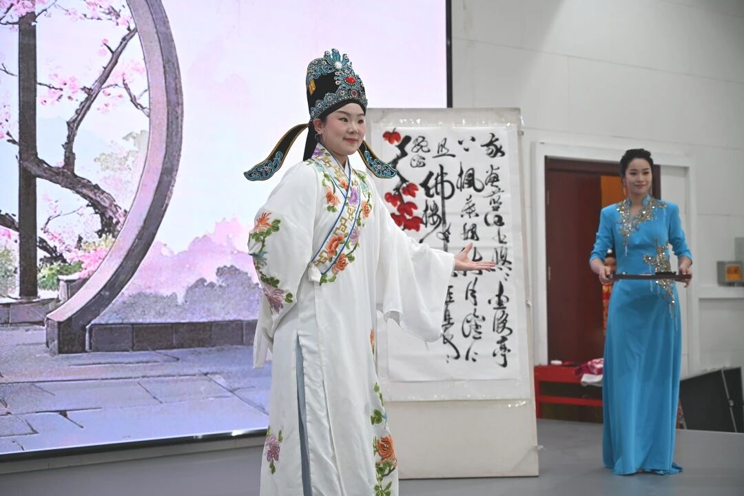 活动现场,戏曲表演、形体专业的青年学子带来豫剧《朝阳沟》《花木兰》《风流才子》《梵王宫》、昆曲《惊梦》、北京曲剧《烟壶》、庐剧《借罗衣》、黄梅戏《女驸马》等经典选段。扎实功底与传神演绎让角色栩栩如生,台下喝彩不断。观众在熟悉的旋律与剧情中浸润传统文化,文化自觉与自信油然而生。
