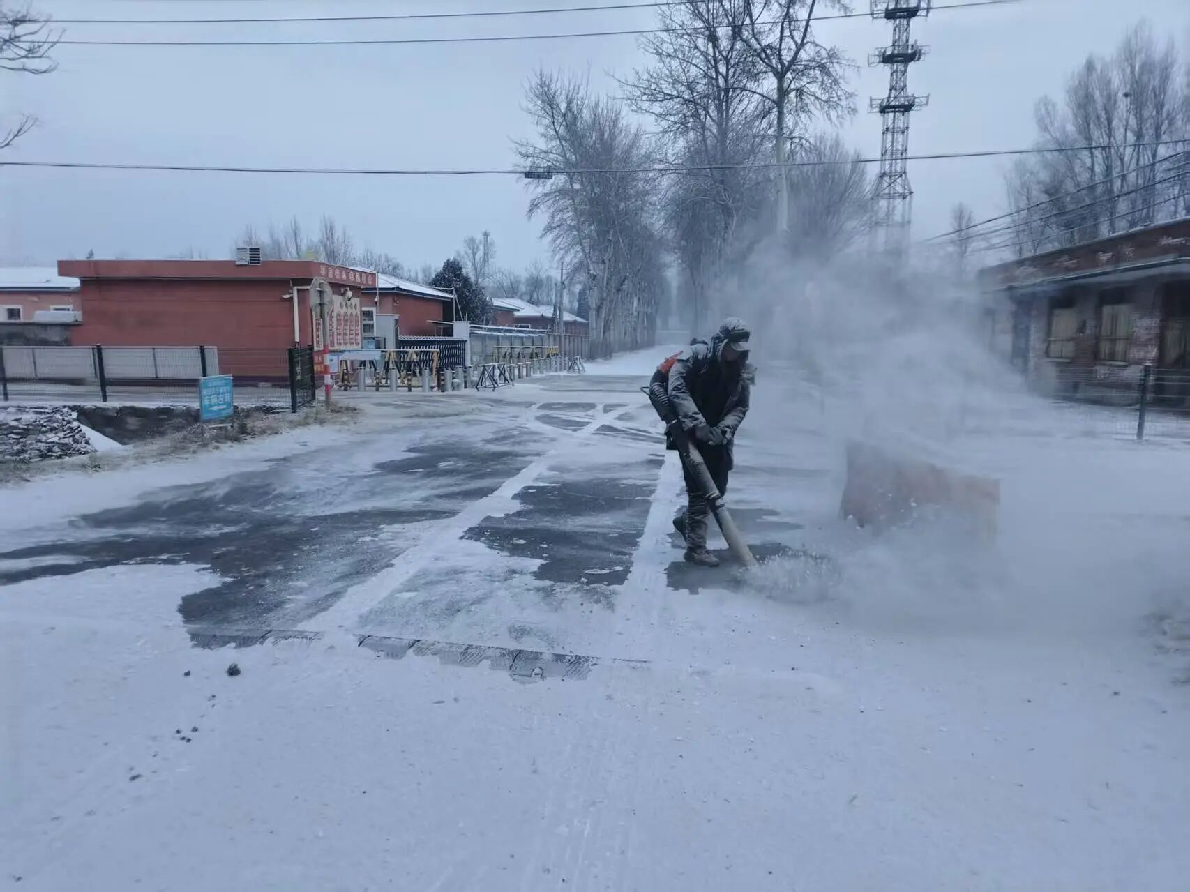 行动中,镇村干部、志愿者、网格员采取机械作业与人工清扫相结合的方式,在镇域主次干道、急弯陡坡及易结冰路段等重点区域开展扫雪除冰工作,确保道路安全畅通,为辖区行人和车辆安全出行提供保障。