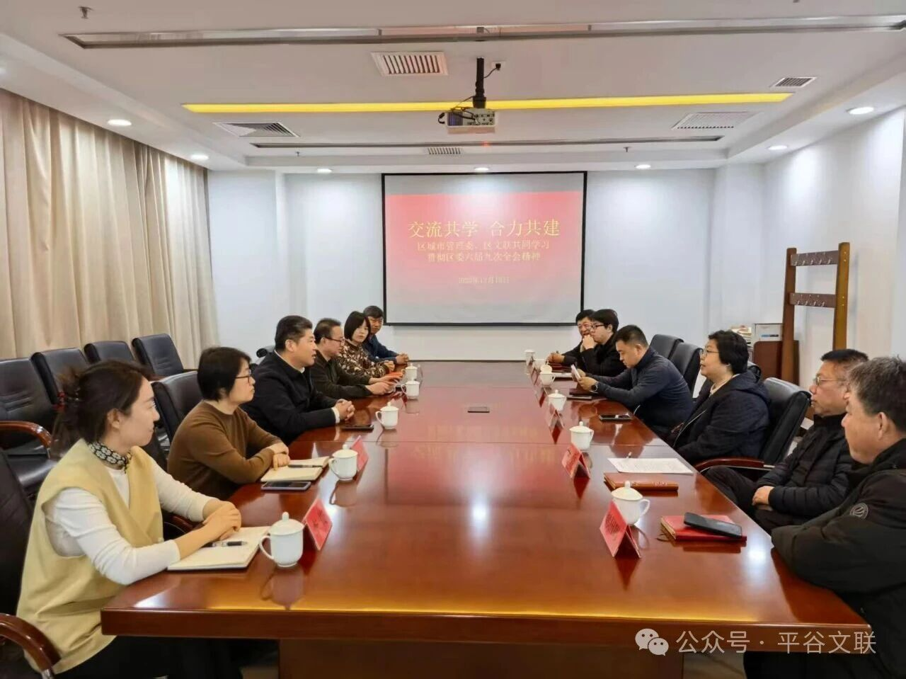 2025年12月15日,平谷区文联与区城市管理委联合开展专题学习活动,将区委六届九次全会精神的学习热潮与工作实践深度融合。平谷区文联党组书记、主席王友河以“我因平谷而骄傲,平谷有我更美好”为题,为两大系统干部职工带来了一场既有理论高度又有实践温度的专题讲座。