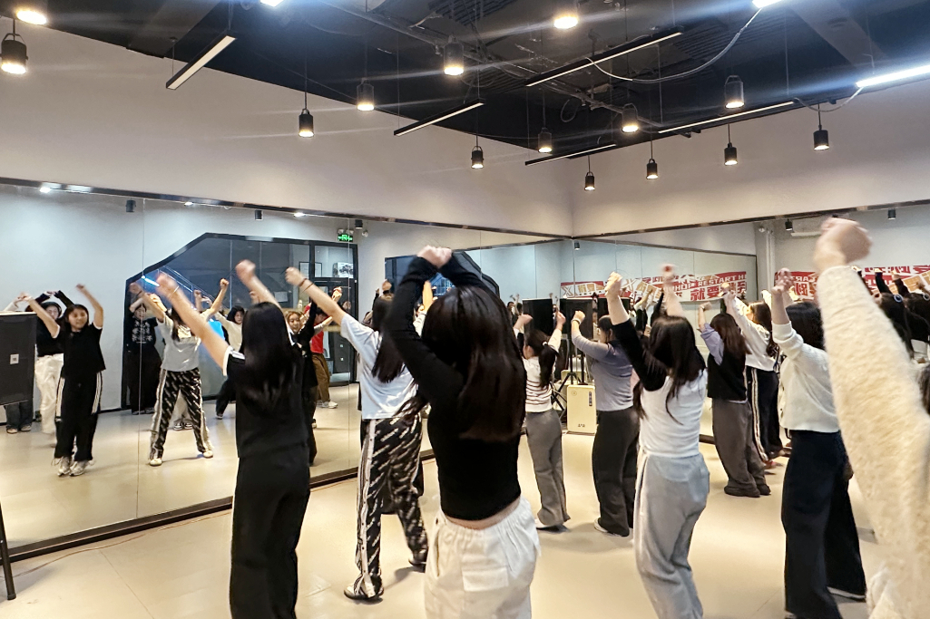 核心教学阶段,采用“节拍感知-分解练习-连贯整合”模式,导师讲解“重拍”概念,示范基础律动并由助教纠错,串联3个律动逐步提速练习,助力青年快速上手。最后,完整成品片段的连贯练习让现场氛围推向高潮,青年们跟随音乐尽情舞动,成就感溢于言表。