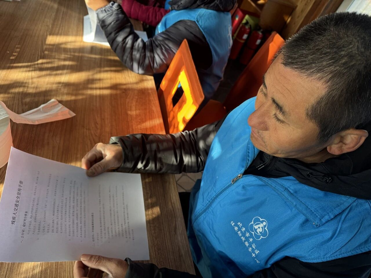 活动现场,工作人员在活动室向参与学员发放交通安全宣传手册,紧密结合乡村道路通行实际与残疾人出行的特殊性,用通俗易懂的语言,深入讲解交通违法行为的潜在危害,细致梳理日常出行中的安全隐患与防范要点,引导大家从思想上绷紧交通安全弦,筑牢安全出行思想防线。