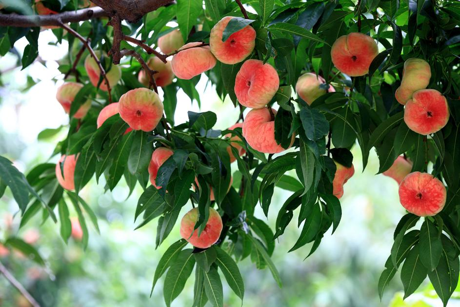 神桃峰下,百亩桃园,在漫长的历史长河中,当年“从天而降”的碧霞蟠桃经历代驯化栽培,当地农技人员不断改良,现已培育出白桃、油桃、黄桃、蟠桃四大系列100多个衍生品种。现在,刘家店镇大桃种植面积1.44万亩,其中蟠桃8000亩,年产量3500万公斤,每年从6月下旬到10月上旬,都有不同品种的桃子上市,蟠桃最为盛名,是果品生产专业镇,享有“中国蟠桃第一镇”之美誉。