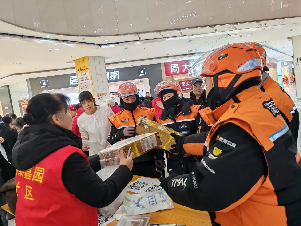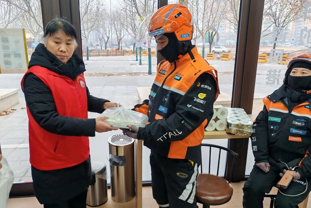 接着,社区组织热心大妈们为外卖员包饺子。包饺子不仅是一项技巧,更是祝福和期许的象征,大家一边聊着家常,一边欢快地包着饺子,一会儿的功夫,一个个皮薄馅大的饺子摆满了盒子。社区工作人员把祝福的饺子送到暖心驿站休息的外卖员手里。大家接到饺子,收到祝福,每个人的笑容挂在脸上,暖在心间。