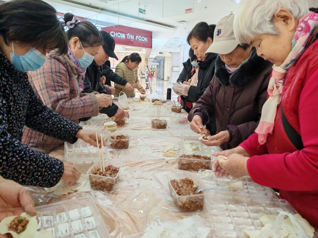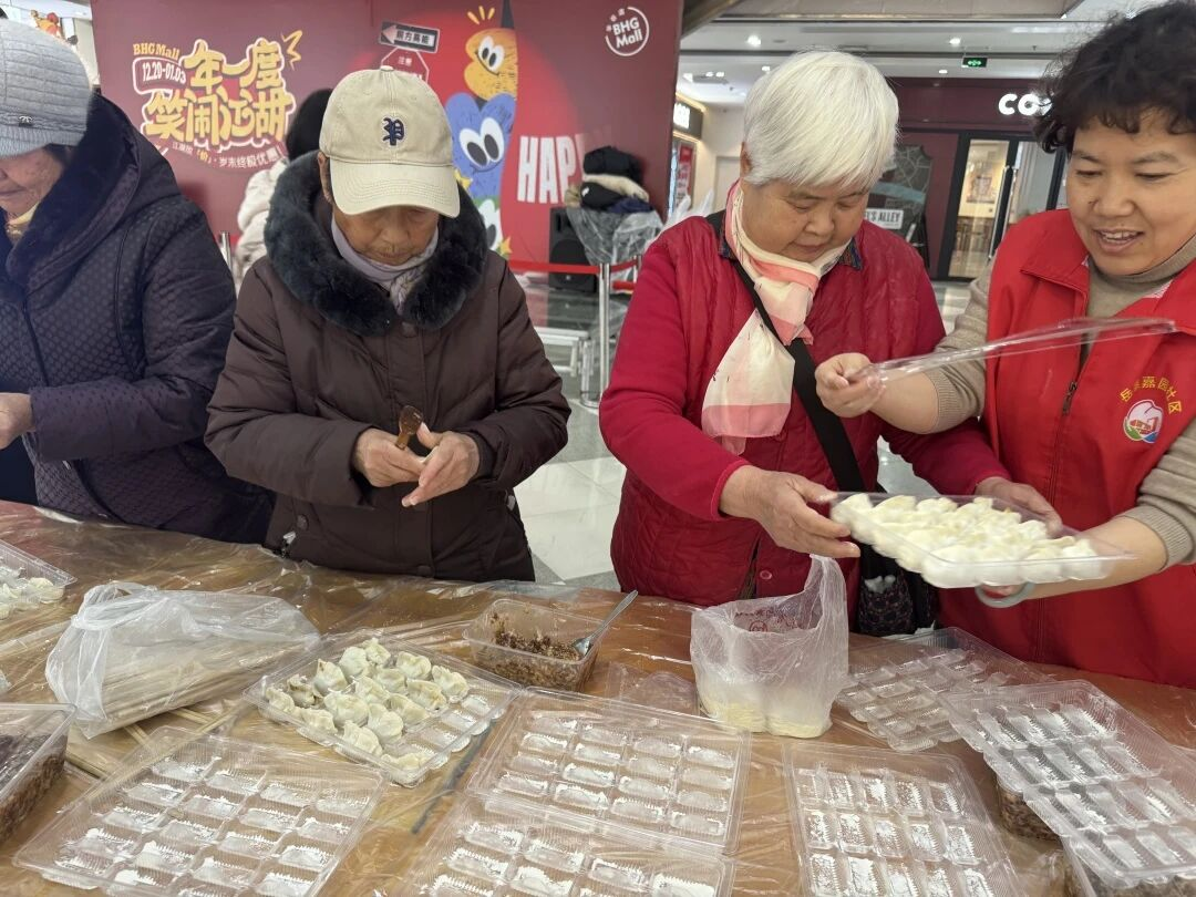 社区工作人员提前采购新鲜食材,从摘菜、调馅、到分装饺子皮,大家分工明确、有条不紊。有的手法娴熟,飞快捏出一个个饱满的饺子;有的初次尝试,在同伴指导下慢慢摸索,现场一派热闹温馨的景象。