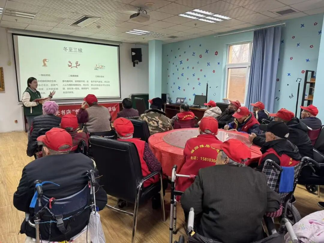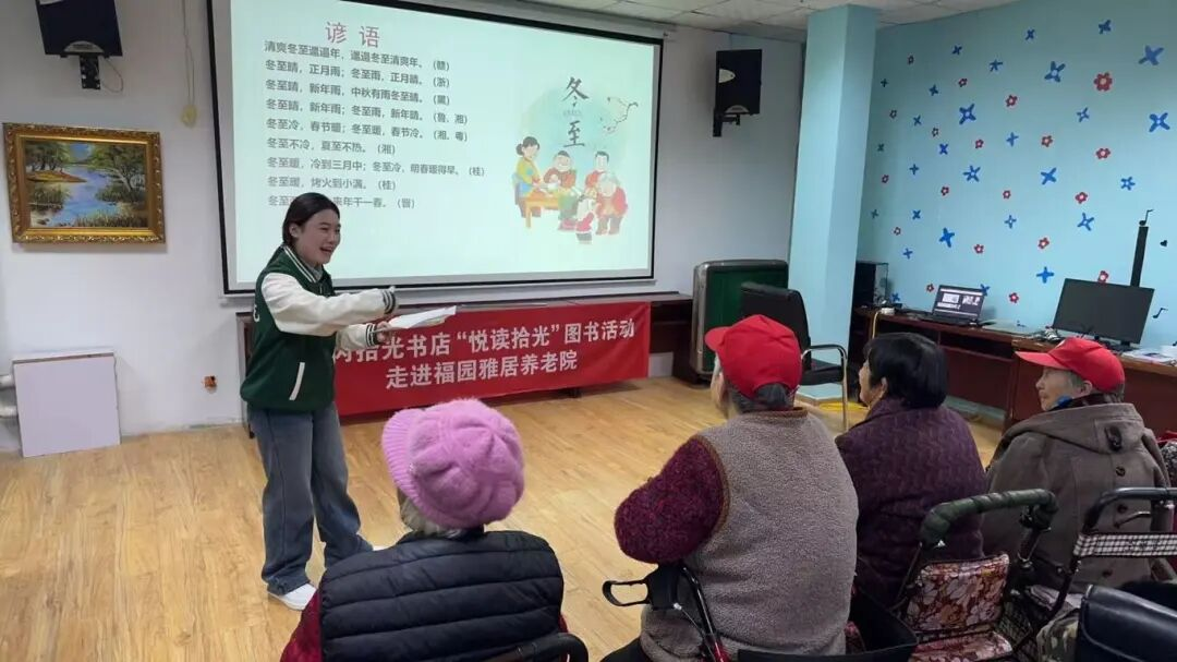 冬至阳生,岁寒情暖。为深入弘扬中华优秀传统文化,丰富老年人精神文化生活,12月19日下午,兴谷街道团工委联合辖区青丙拾光书店,走进福园雅居养老院,开展了一场以“二十四节气·冬至”为主题的“书香暖冬·情系桑榆”公益文化活动。