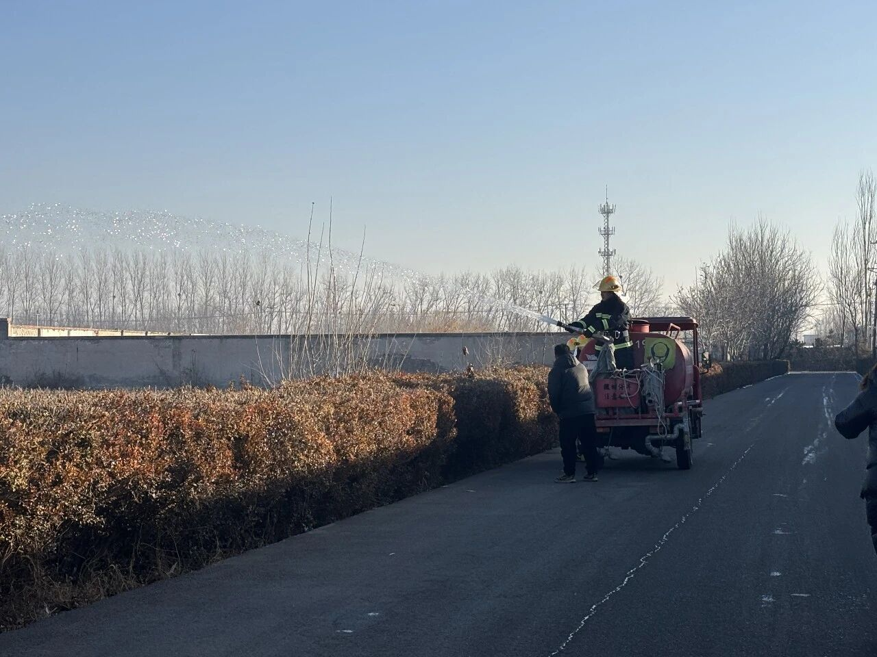 演练以“提升实战能力,守护乡村平安”为主题,白各庄消防站、镇安全科联合王辛庄村“两委”干部组织村内自防自救力量队伍开展实战演练,模拟村内路边田地枯草起火。接到 “火情”报告后,应急小组迅速响应,携带灭火器、消防水带赶赴现场,对准火源根部实施扑救。整个过程紧张有序,有效检验了镇村应急力量的快速反应与协同作战水平。