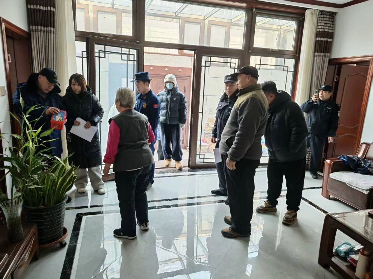 演练结束后,工作人员随即入户检查消防“四件套”(灭火器、独立式烟感报警器、灭火毯、逃生面罩)配备情况,重点关注设备有效期、完好度及摆放位置。针对缺失、过期或摆放不当等问题,现场登记并联合村“两委”制定整改清单,明确时限,确保隐患闭环整改。同时,工作人员向村民普及用火用电用气安全知识,提醒定期检查线路、清理可燃物,从源头上防范火灾。