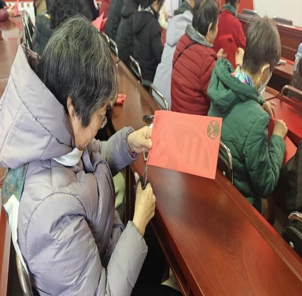 红纸翻飞,剪刀轻舞,一张张普通的彩纸在残疾朋友们的指尖悄然蜕变,化作寓意吉祥的福字、灵动传神的生肖、精巧雅致的团花……12月22日上午,一场以“剪纸传情•共赴美好”为主题的残疾人剪窗花活动在平谷镇太平街村温情启幕,40余名残疾人朋友与志愿者齐聚一堂,在非遗技艺的浸润中感受传统魅力,在协作创作中收获自信与温暖。