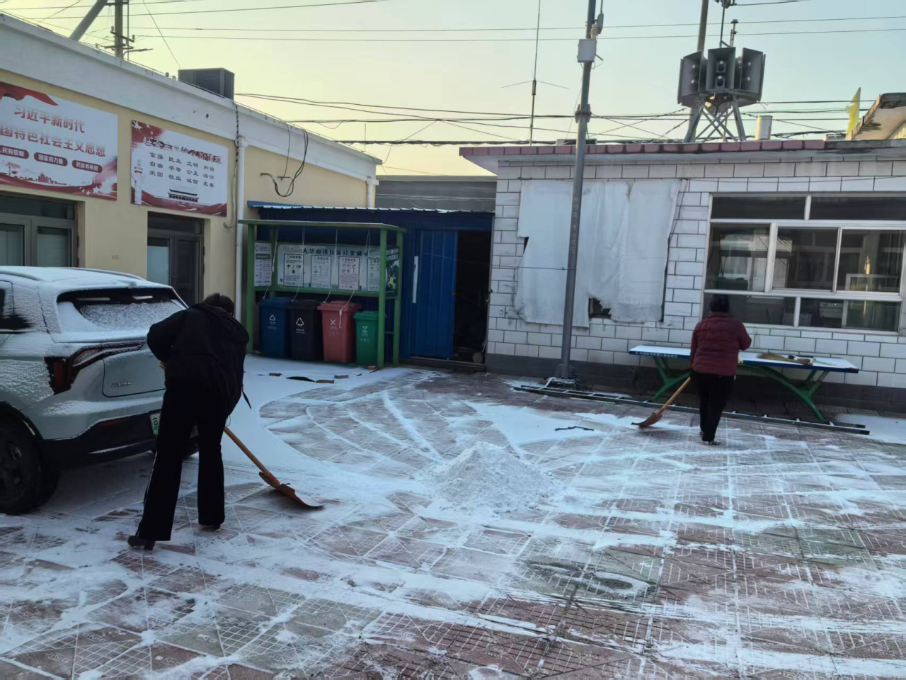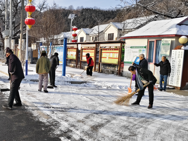 二是党群联动,清雪保畅全覆盖。充分发挥“支部引领、党员带头、群众参与”的联动机制。各村党组织立即行动,组织党员成立突击队,并广泛动员村民代表、志愿者、网格员、护林员等力量,对村级主要道路、村委会周边、公共场所等进行集中清扫。同时,发动“门前三包”责任制落实,引导商户、农户清扫门前积雪,共同维护出行环境。
